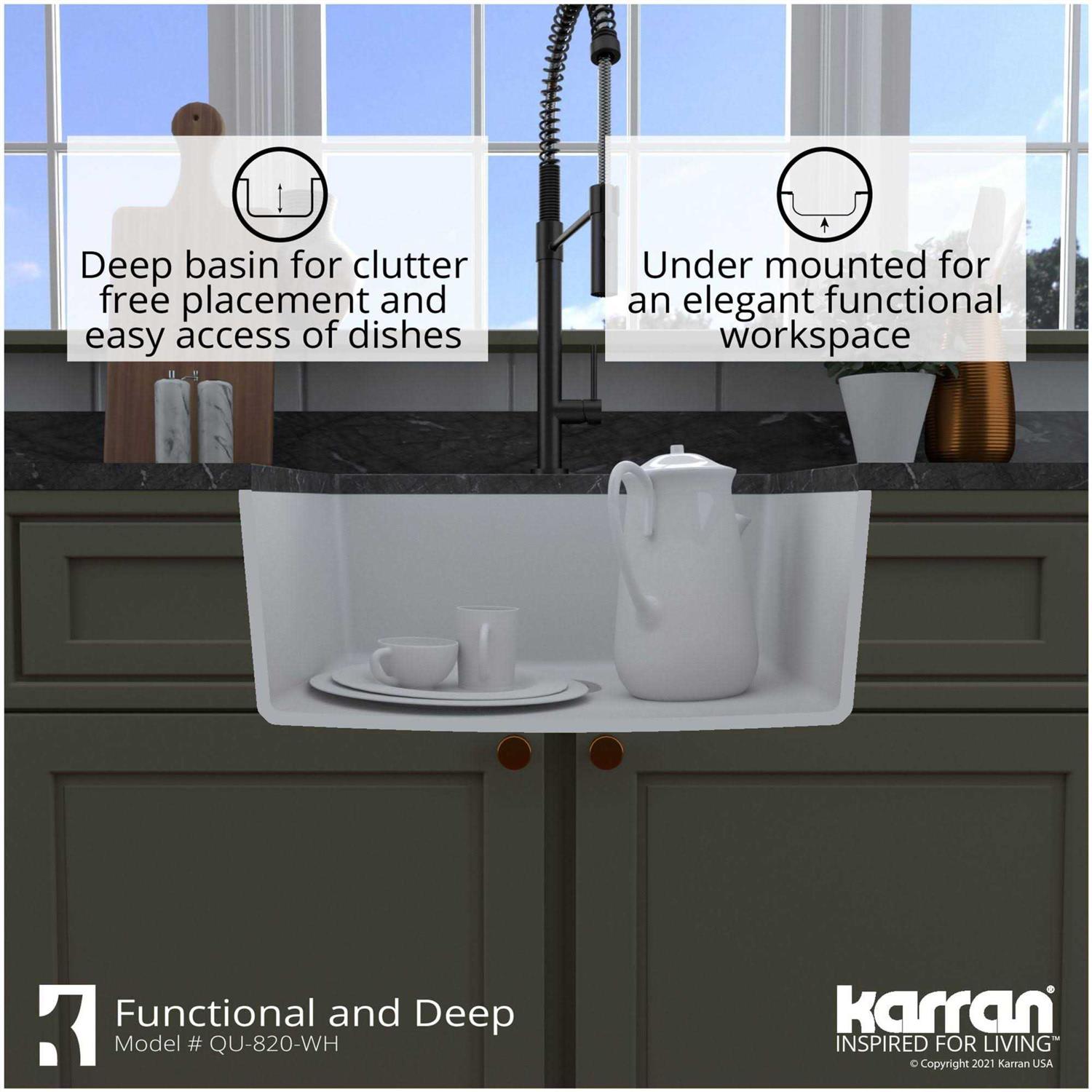 Karran Undermount 24.38 in Single Bowl Quartz Kitchen Sink QU-820