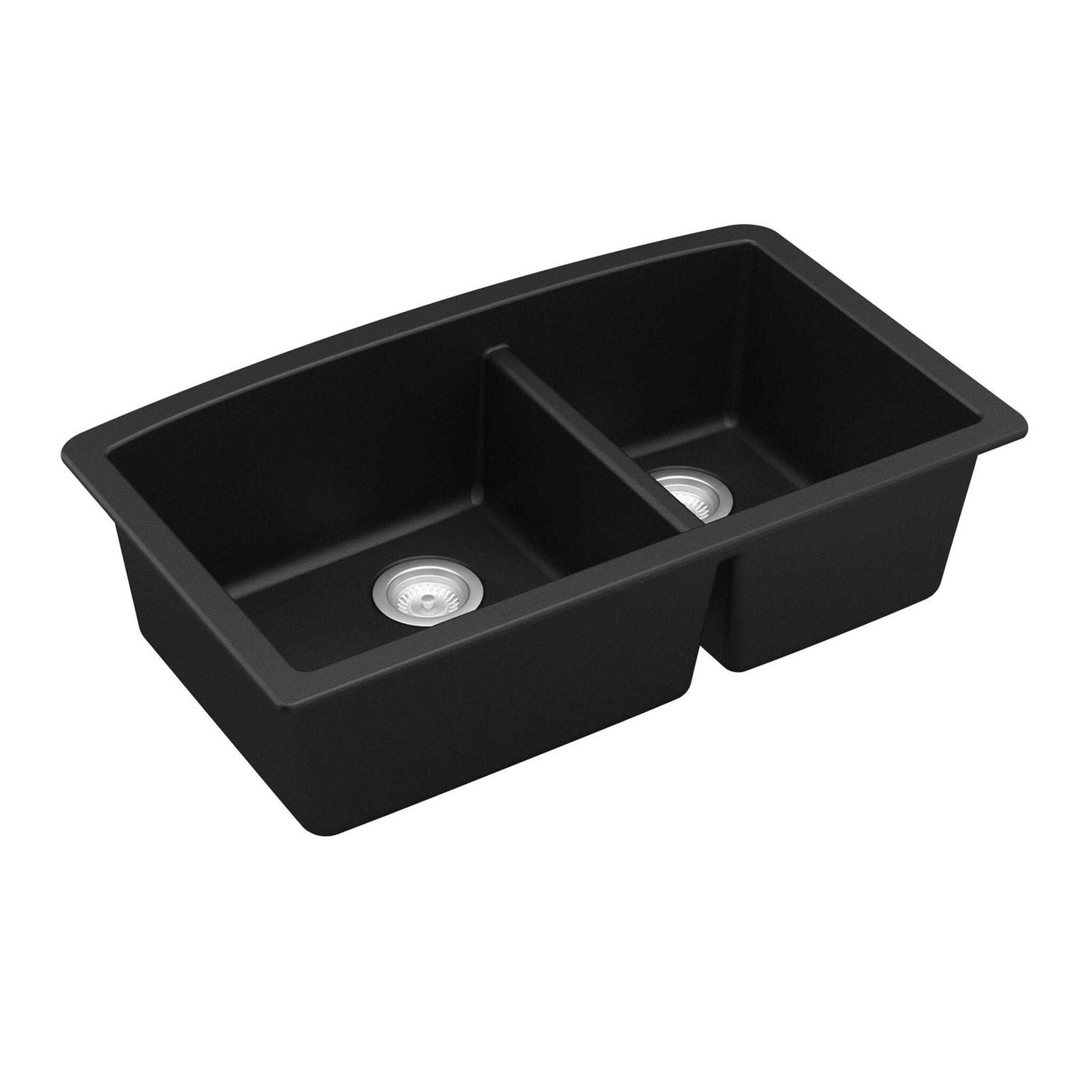 Karran QU-711 Undermount Quartz Composite 32 in. 60/40 Double Bowl Kitchen Sink in Black