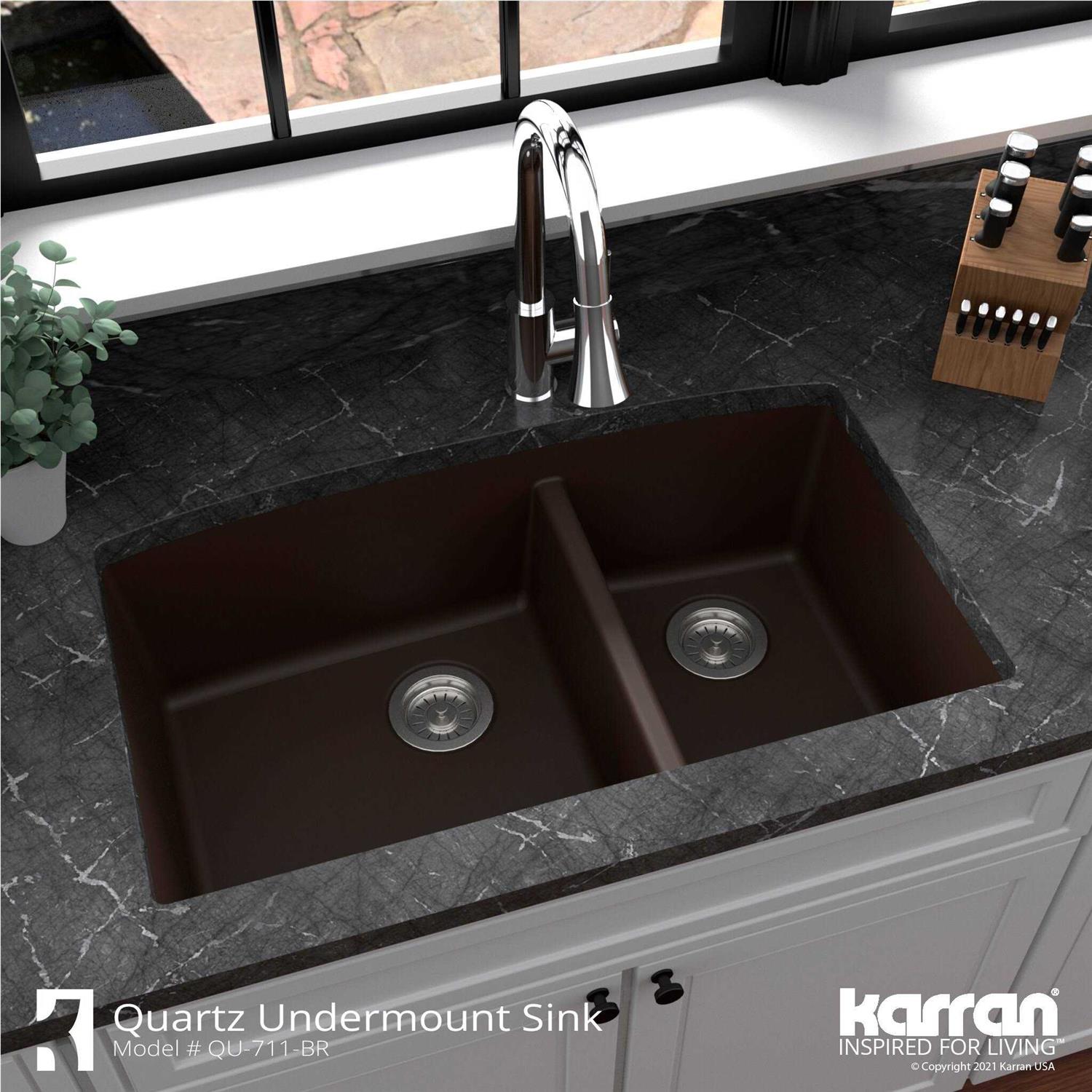 Karran QU-711 Undermount Quartz Composite 32 in. 60/40 Double Bowl Kitchen Sink in Brown