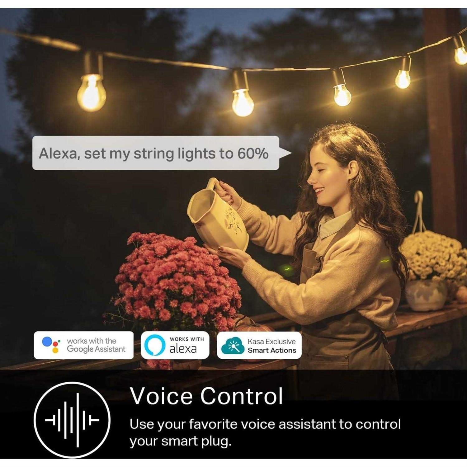 Weather-resistant The IP64 rating and weather-resistant cover ensure protection against dust intrusion and splashes of water. Cover the socket with the weatherproof cover when not in use. Voice Control Use simple voice commands with Alexa or Google Assistant to control your connected devices. Set Schedules Switch your outdoor lighting on and off automatically to save energy and effort. Full-range Brightness Adjust the brightness of connected lights outdoors to set the perfect ambiance for any activity. Control From Anywhere Turn your connected device on and off from anywhere using the Kasa Smart app. No Hub Required Works with a secured 2.4 GHz wireless network without needing a hub or a separate device. Make Your Light Dimmable Freely adjust the brightness of connected lights outdoors with Kasa Smart App or Smart assistants. Set the ambiance for any mood or activity as you want. Its materials ensure that it is suitable for outdoor use. 300 ft Long Range WiFi Enjoy one of the strongest WiFi signals with the Kasa Smart WiFi Outdoor Plug-in Dimmer. Up to 300 ft coverage means there wont be any dead spots anywhere in your backyard. Schedule Schedule your Plug-in Dimmers to turn on/off automatically at specified times or according to Sunrise/Sunset. Grouping Scenes Group your Plug -in Dimmer with other Kasa devices to turn then all on and off with one click or choose a custom preset with. Away Mode Away Mode will automatically turn on and off your connected devices, like lights, to make it appear as if youre home. Countdown Timer Away Set a timer for your Plug-in Dimmers to automatically turn off when the time runs out.