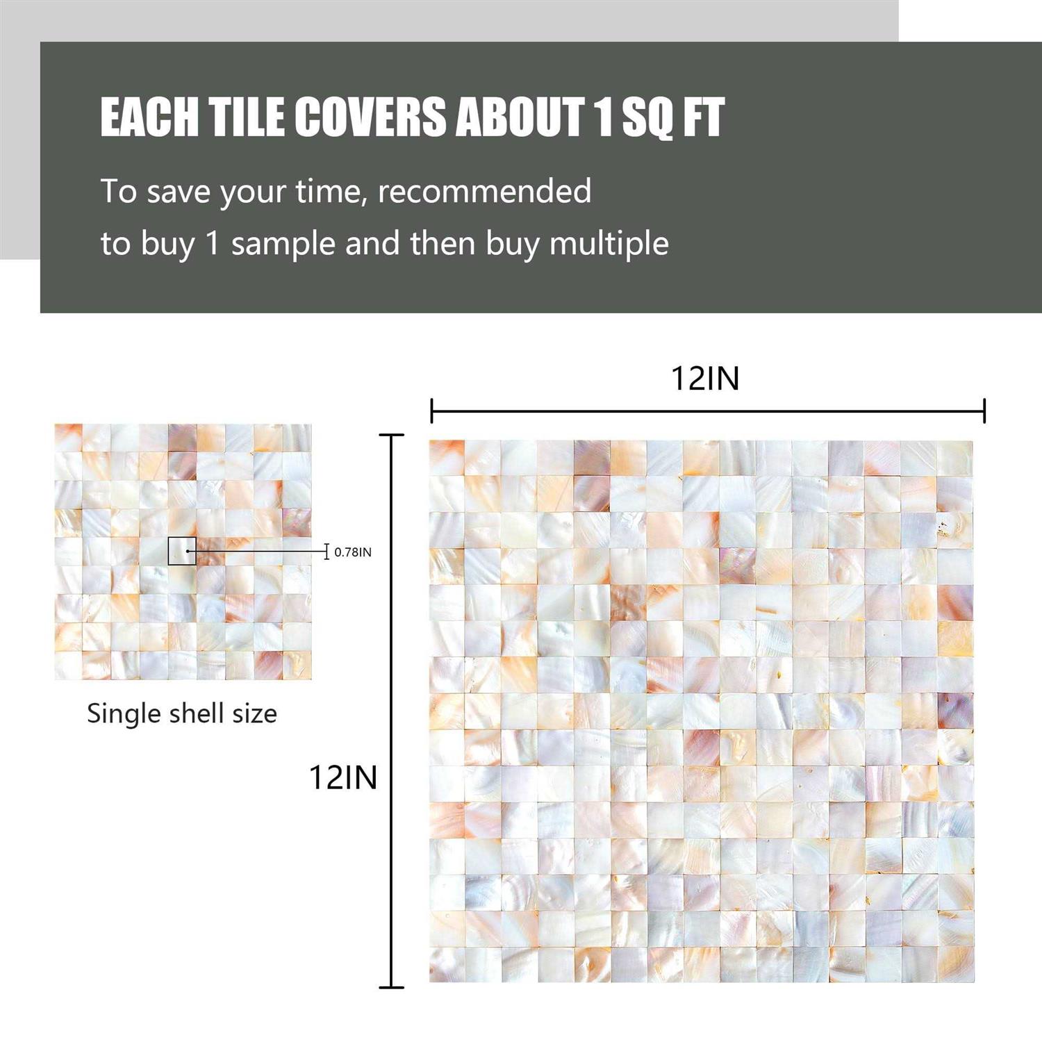 KASARO Wall Tile Peel and Stick Mosaic Shell Backsplash Tile for Bedroom and Bathroom Mother of Pearl (1, Nature): NATURAL MATERIAL: KASARO shell tiles are made by continuous polishing of natural shells. Only need towels and water to complete the cleaning. Thanks to pure natural material, our tiles are safe and formaldehyde-free, suitable for many occasions. PACKAGE: 12 inchx12 inch per sheet, 1 sheet a package, about 1 square foot covering. You could measure the decoration area before purchasing.