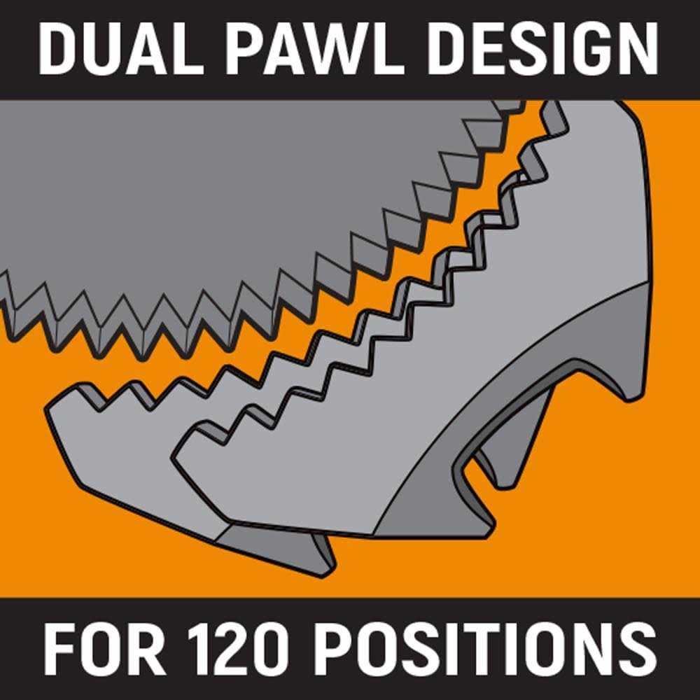- 120XP wrenches have two double stacked 60-tooth pawls (120 positions) providing a 3° swing arc so you can turn fasteners in tighter confines