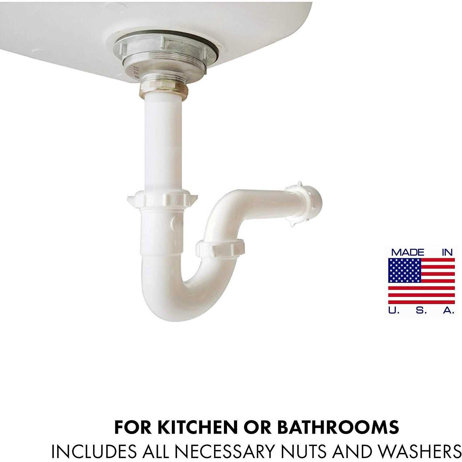 Keeney’s 400WK P-Trap is designed to prevent sewer gas from escaping from a plumbing fixture or drain in a kitchen or bathroom. It has a 1-1/2 in. inlet and outlet with a reducing washer for 1-1/4 in. connections, allowing for easy slip joint installation. The durable white polypropylene construction offers long-lasting use. This product includes all the necessary nuts and washers for installation.