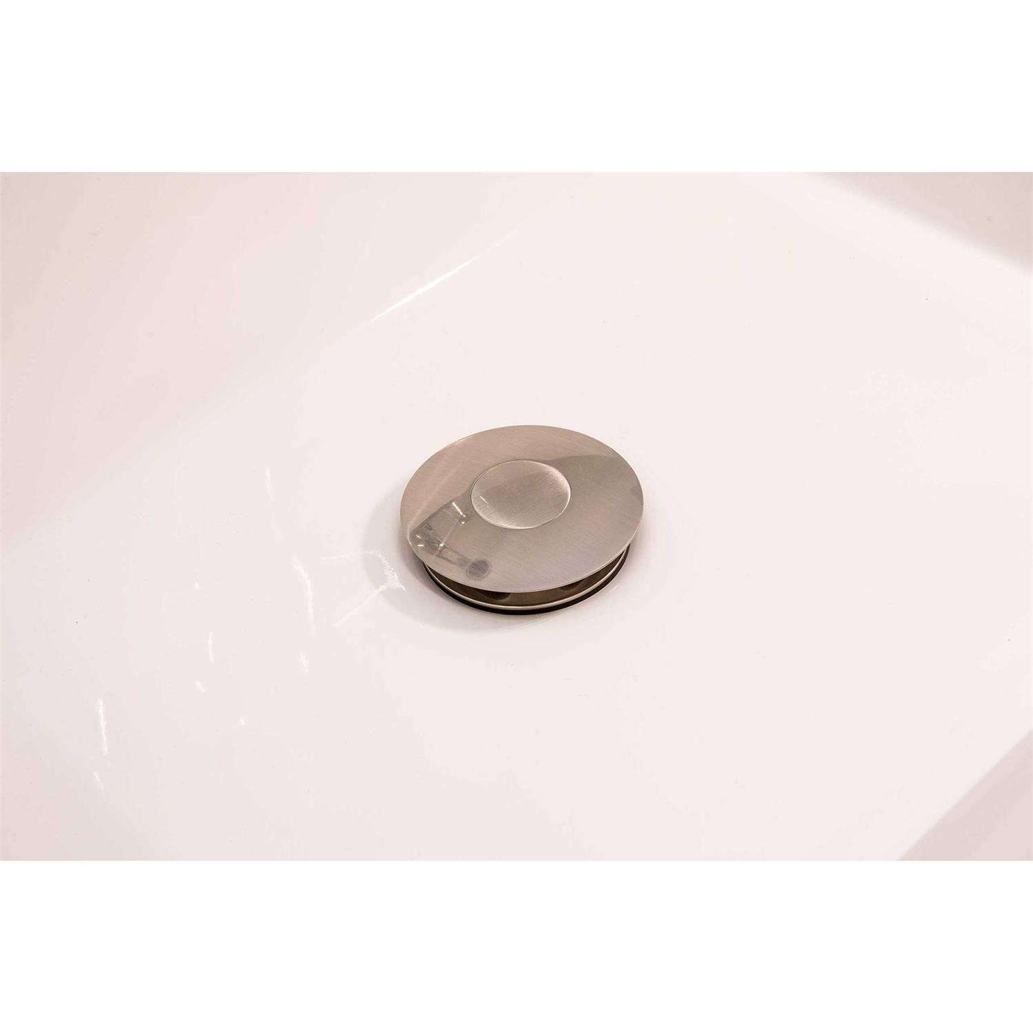 Keeney’s decorative push button bathroom sink drain is an ideal solution for use with popular lavatory sinks, specifically pedestal, vessel, drop in, and under-mount styles. It is ideal for sinks without an overflow, featuring a 1-1/4-in standard outlet pipe that fits sink drain holes at least 1.6-in diameter. Its brass body makes for a long-lasting staple for years to come. With an easy push button closure to seal and release the drain, this pop-up drain is easy to clean and instantly updates any bathroom sink setup. Available in polished chrome, brushed nickel, and bronze. Spring-loaded stopper enables efficient push-button operation Fits pedestal, vessel, drop-in, and undermount bathroom sinks Solid brass body construction ensures durability Decorative, easy to use push button For bathroom sink drain without overflow Fits popular bathroom sink styles: pedestal, vessel, drop-in, undermount Solid brass body construction Outlet pipe of 1-1/4-in fits sink drain holes of 1.6-in minimum Available in chrome, brushed nickel, and oil rubbed bronze Add a fantastic look to bathroom by selecting this KEENEY Push Button Bathroom Sink Drain without Overflow, Brushed Nickel. Solid brass body construction.