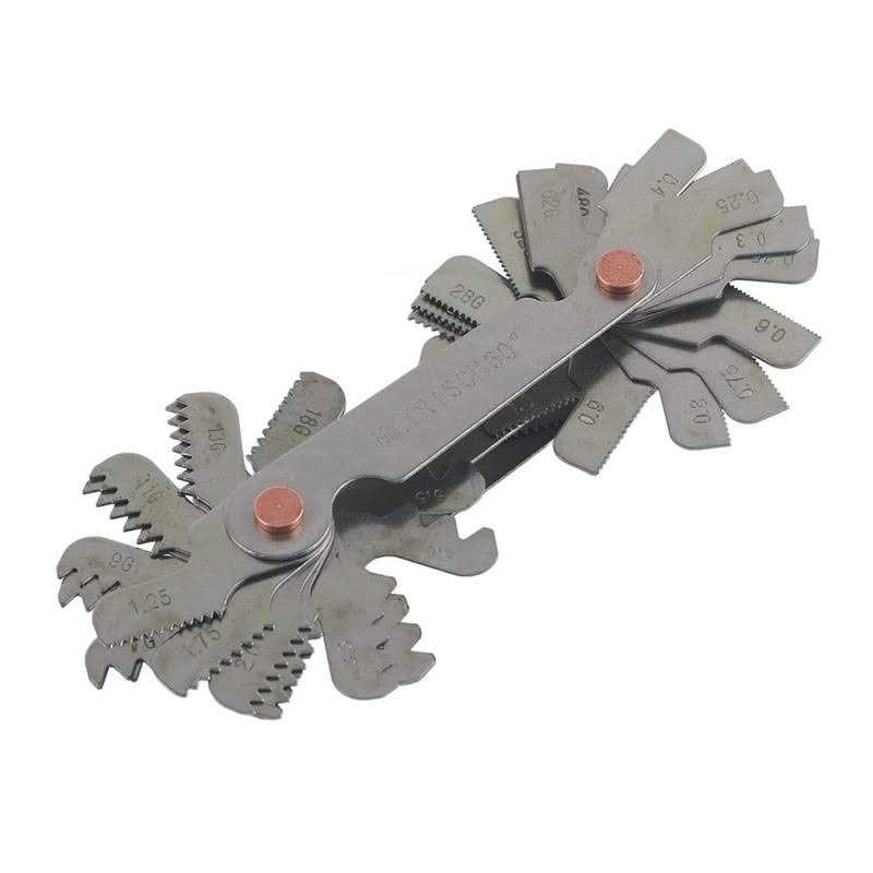 Features: Applied to measure thread and external thread tooth pitch. The thread plug gage, through quenching processing, strong hardness, head with a magnetic. Using rotary switch can be freely adjusted. Easy to use, light and delicate, with precise measurements and simple design, which can be widely used and durable. It is useful for checking tool angle while cutting threads in metal turning lathes.