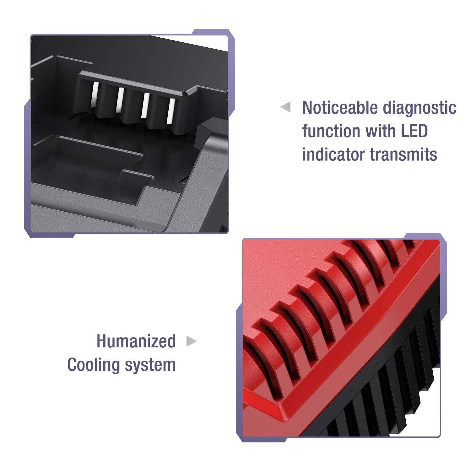 Professional Replacement battery Compatible with Porter Cable PC18B. Powers all Porter-Cable 18V power tools. 【Replacement Battery and Charger】Replacement for PORTER-CABLE 18V MAX Battery Charger. 100-240V Input US Plug for Porter-Cable 18-Volt MAX Lithium-Ion & Ni-Cd & Ni-MH Battery 【Fast Charging】The Replacement Charger for 18V Cordless tools battery built-in charger diagnostic program checks batteries with every charge, 2.0Ah Lithium batteries full charged in 1 hour or less,4.0Ah Lithium batteries full charged in 2 hour or less,save your charging time and work time.