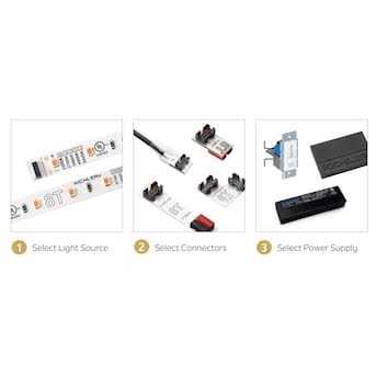 - Appropriate wire, splice boxes as necessary, connectors as needed, 24V LED Light source such as tape light or puck lights.