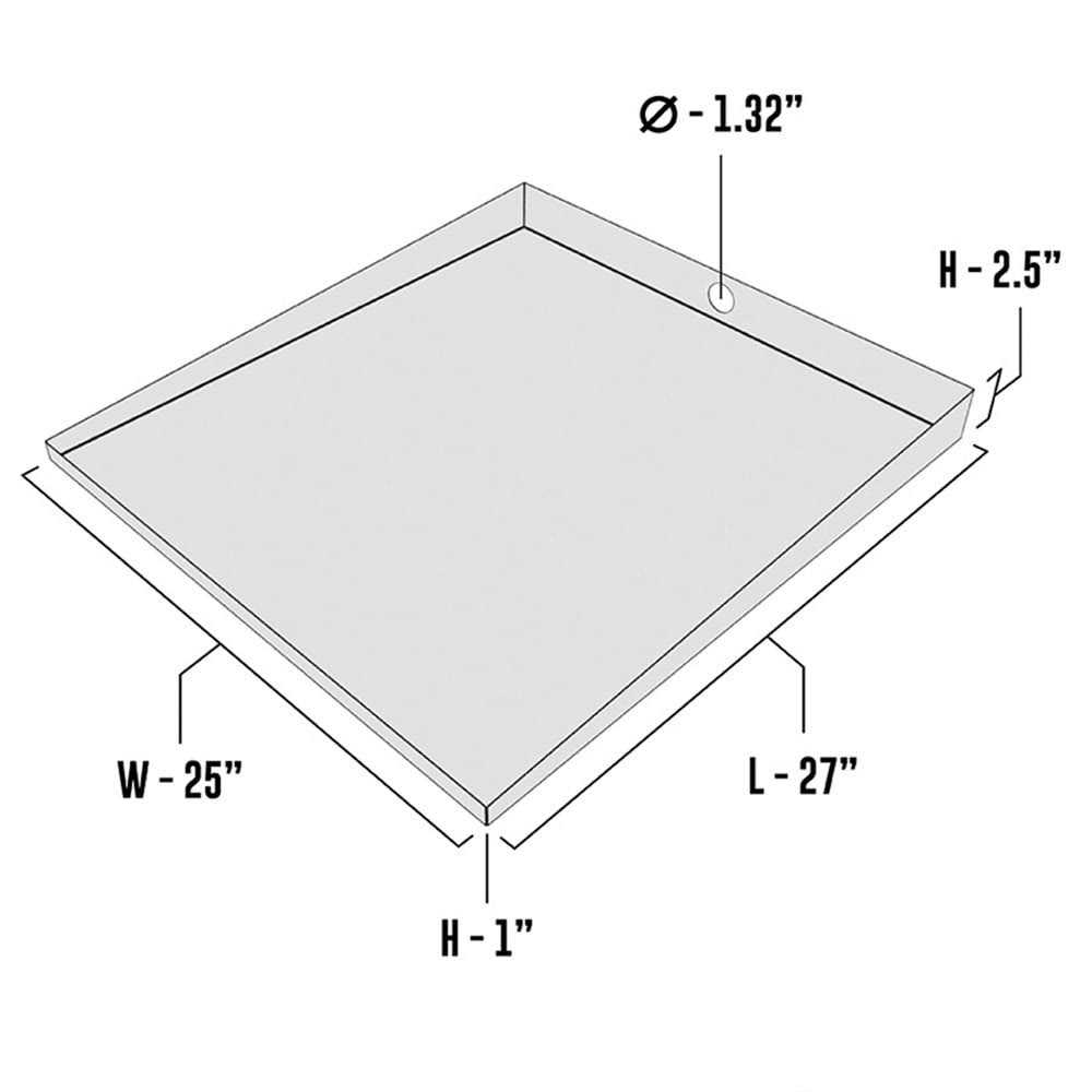 Killarney Metals Compact Front-Load Drain Pan with LAD- 27″ x 25″ – Galvanized KM-05470