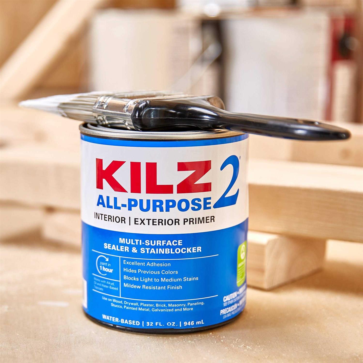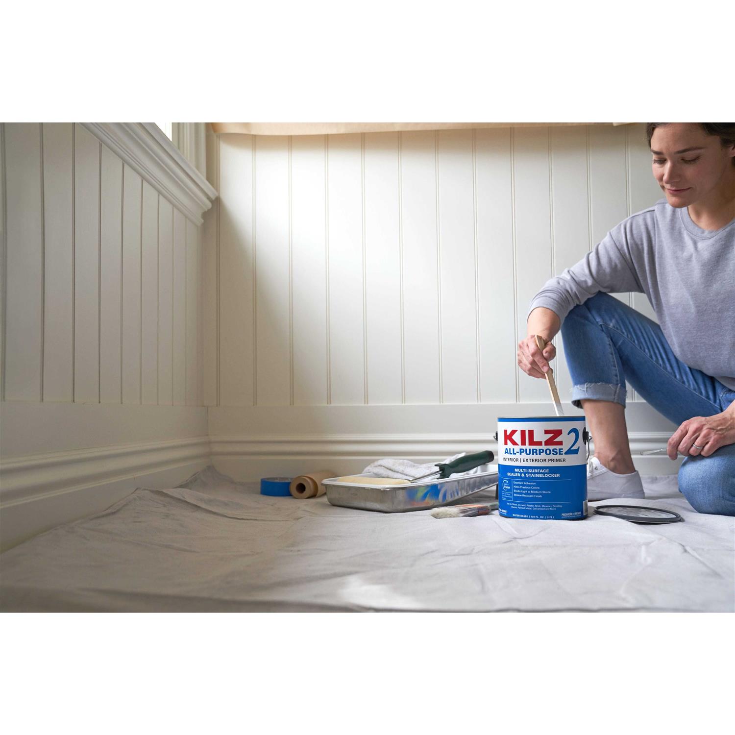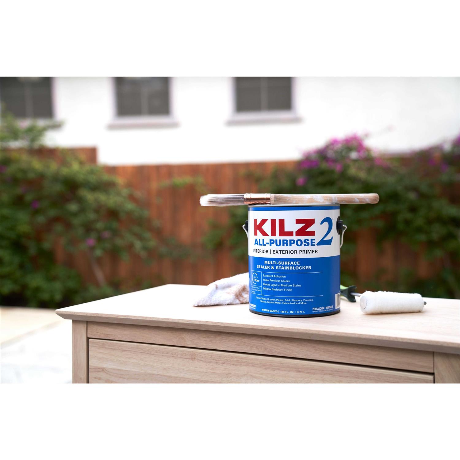 KILZ 2 LATEX is a fast drying, water-based, multi-purpose primer-sealer-stainblocker that can be topcoated with latex or oil-based paint. It has a very mild odor, which makes it an excellent choice for interior and exterior applications. KILZ 2 blocks most stains including water, rust, grease, ink, pencil and felt marker. Use on interior and exterior surfaces including woodwork, drywall, plaster, paneling, masonry, brick, painted metal and properly prepared glossy surfaces. KILZ 2 is not recommended on flooring.