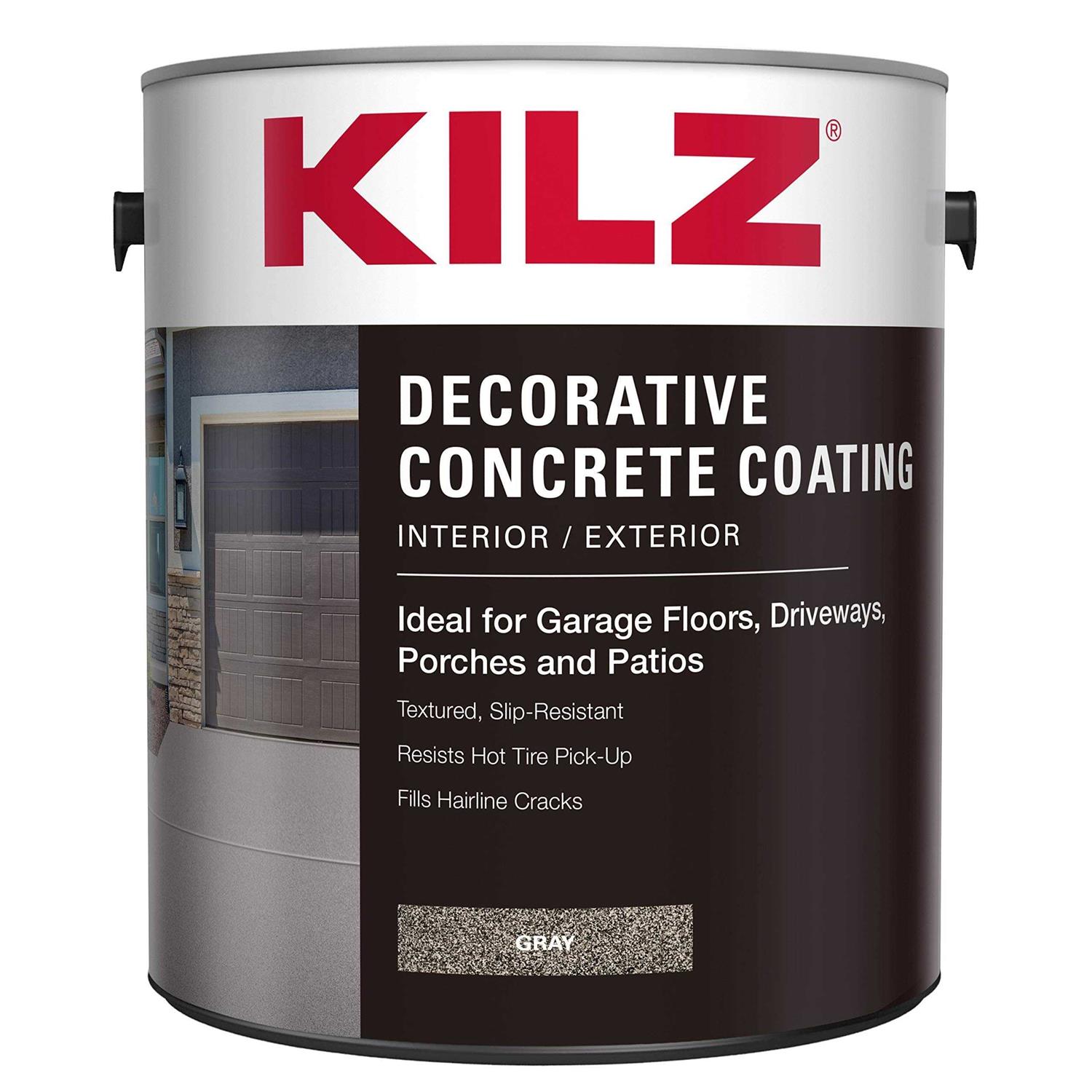 Kilz Decorative Concrete Coating, Interior/Exterior, Slip Resistant, Gray, 1 Gallon