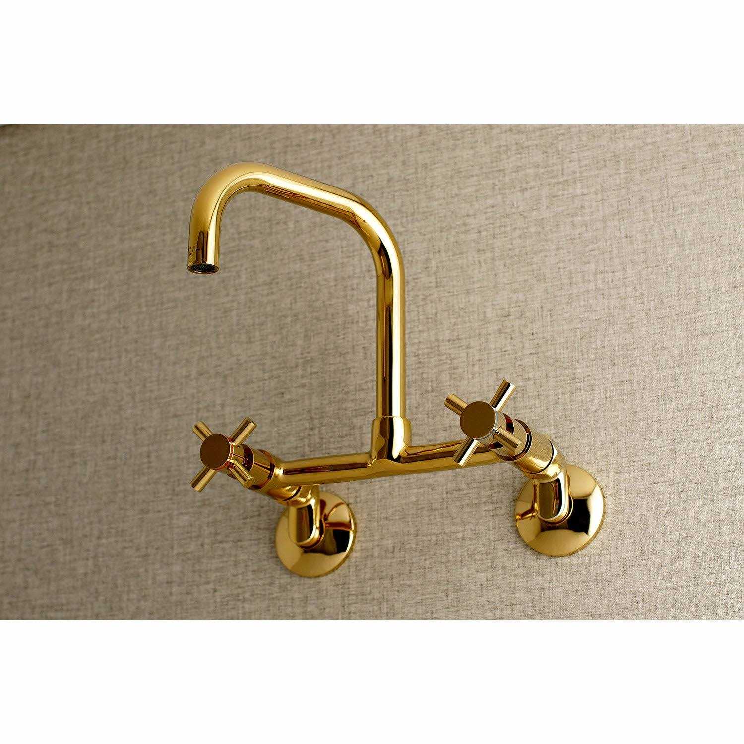 Concord 8-Inch Adjustable Center Wall Mount Kitchen Faucet, Brushed Brass | Kingston Brass