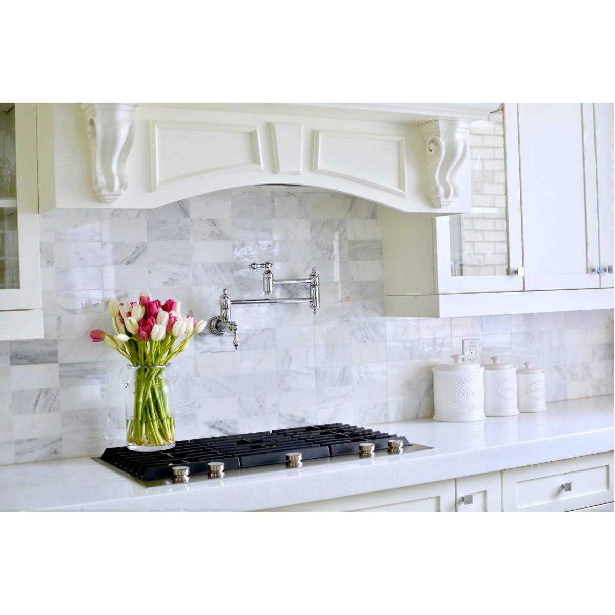 Classical artistry from the late 19th Century to early 20th Century is mirrored beautifully within this faucet’s traditional charm. As an excellent tool to quickly, easily, and stylishly fill pots, eliminate strain on your joints. Pot-fillers are useful gadgets placed directly above the stove, providing easily accessible water. The foldable swing arms of this pot filler allow for extendable reach of up to 20″ of length and provide long-lasting function due to their sturdy brass construction. Additionally, the dual handles prevent unwanted water spillage while enhancing the traditional theme.
