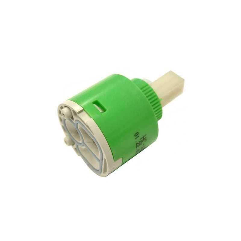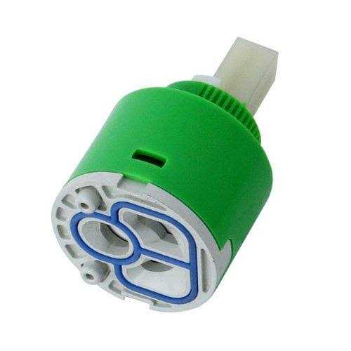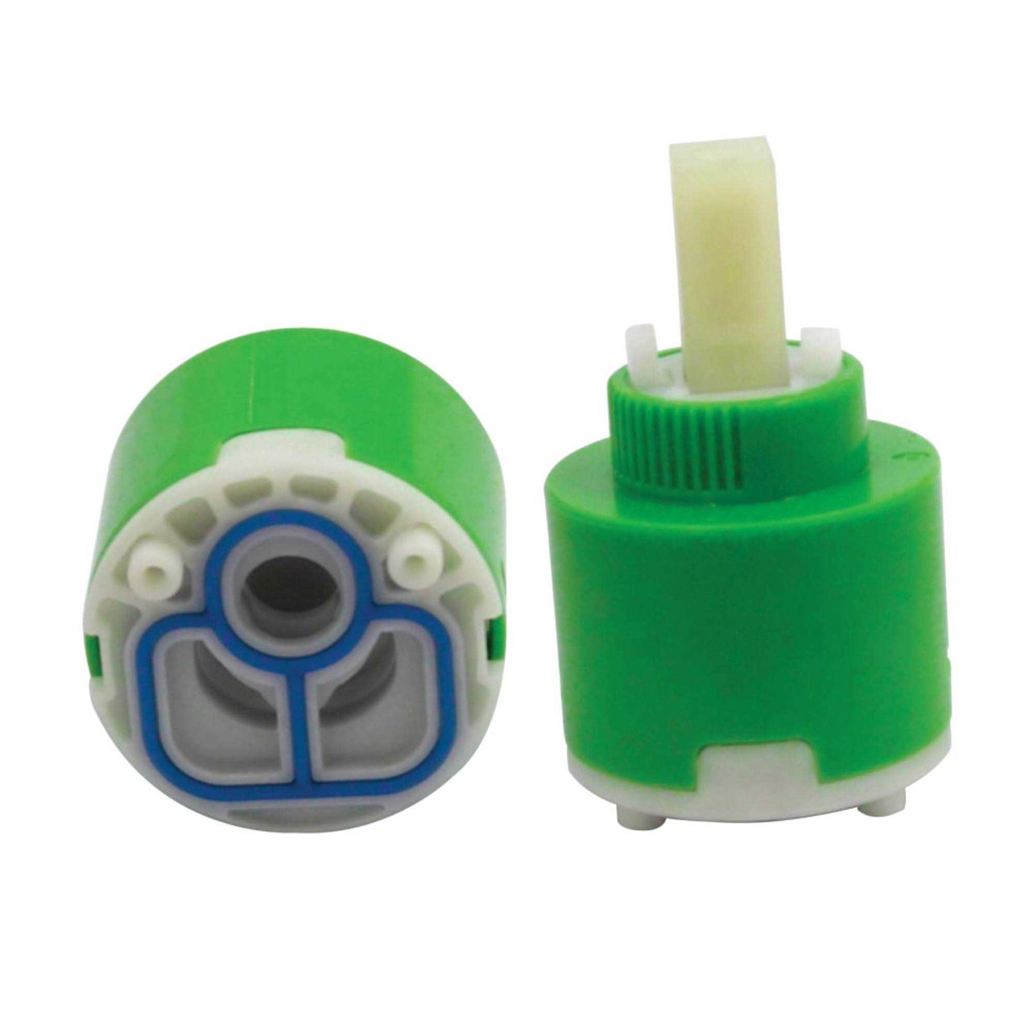 The ceramic disc cartridge is the heart of the faucet, controlling its temperature and water flow. Internally, two opposing discs made out of ceramic carbide rotate to control the flow of water. Because ceramic carbide is impervious to friction, it can last for many years before needing replacement.