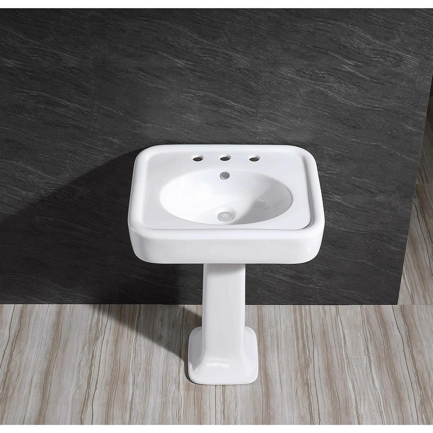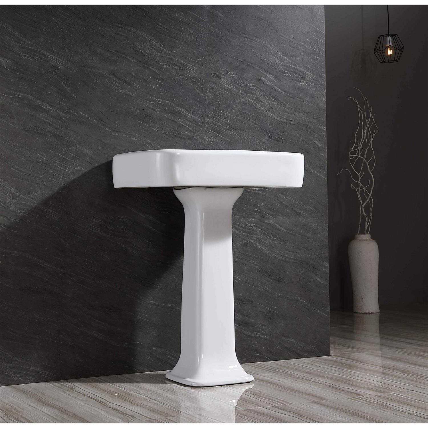 Kingston Brass VPB2268 26 x 8 in. Robert Ceramic Pedestal Sink with Faucet Drillings, White