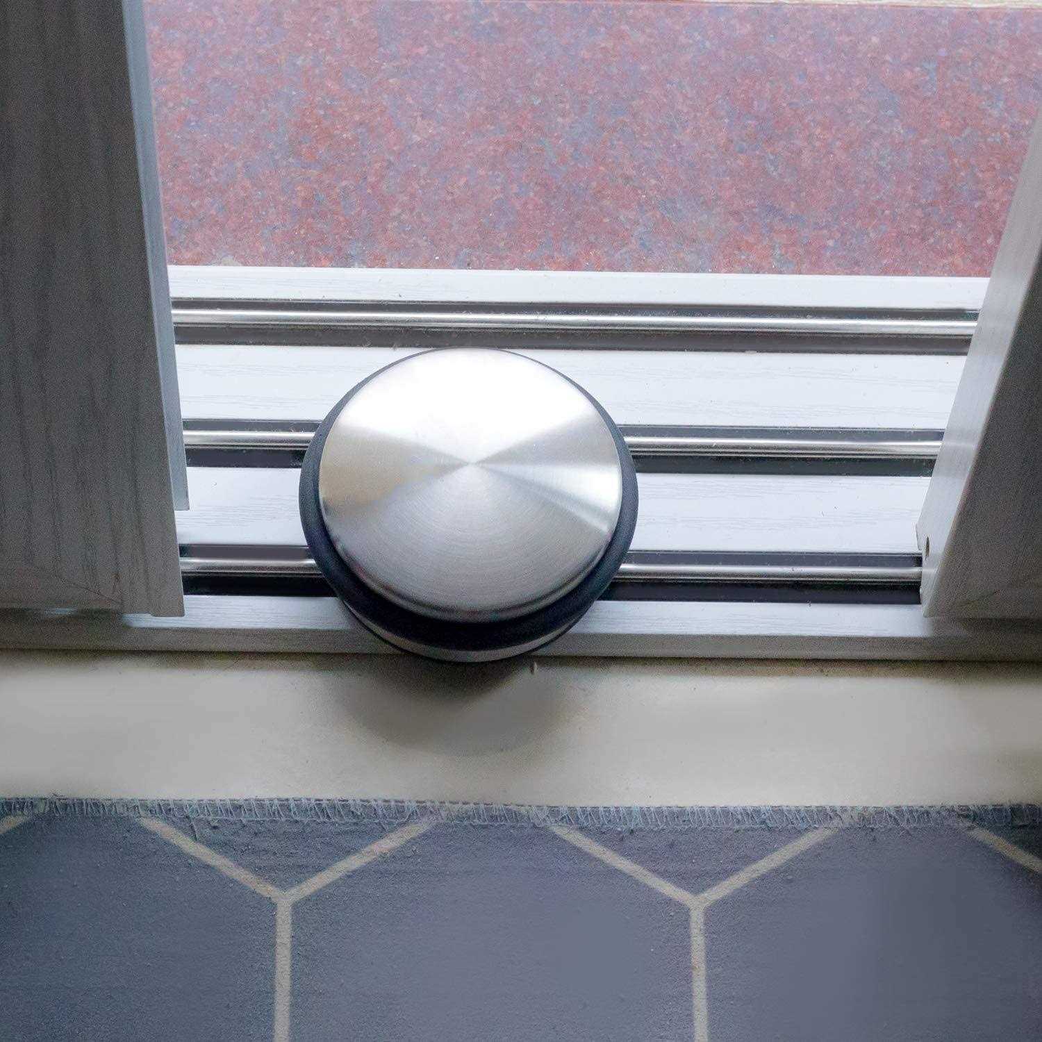 HIGH QUALITY MATERIAL – This round door stopper is made from high quality stainless steel, it will also protect your furniture, walls and floors with its additional protective rubber bands. EASY TO INSTALL WITHOUT DRILLING – The heavy duty design guarantees a stable stand on all surfaces. Easy to install and no need to drill. The bottom of the doorstop contains a slip-free rubber, which increases the stability. MULTI USES – The door stop is ideal for regular indoor doors, bathrooms and bedroom, kitchen, office, residence or commercial place. Excellent to avoid door handles making marks on walls if placed behind the door or to avoid doors closing if placed in front. MODERN AND STYLISH DESIGN – The size of the door stopper is 3.97 * 1.7 inch, weight 1.54 lbs, perfect for all flooring surfaces including carpet, wood, tile, stone, concrete, laminate, and linoleum. Sleek, modern design enhance a home’s decor.