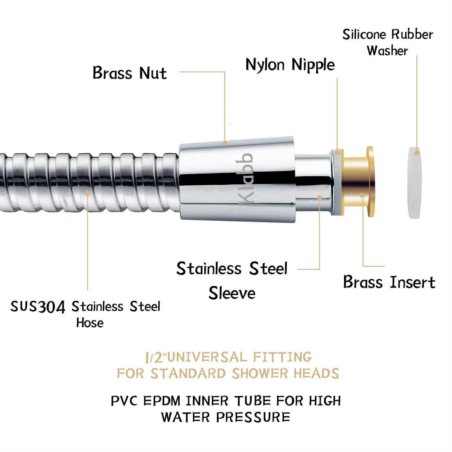 Klabb Stainless Steel Shower Hose Chrome Handheld Shower Head Hose with Brass insert and nut