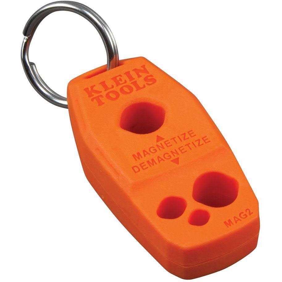 Dropping screws on the job can kill your productivity. Always have a magnetic screwdriver handy with Klein Tools’ Mag2 Magnetizer/Demagnetizer.Quickly and easily magnetizes your screwdrivers and bits to hold your fasteners on the tip of your screwdriver and get the job done fast. This compact tool is great to have on hand when you need a magnetized screwdriver or bit. Powerful rare-earth magnets provide a fast, strong, long lasting charge. Easily attach it to your tool bag with the included stainless steel key ring. Once you have one, you’ll wonder what you ever did without it.