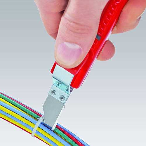 The KNIPEX cable knife is great for stripping all common round cables. The knife includes a self-locking holding lever and an adjusting screw for cutting depth adaptation. The turntable blade is great for circular and longitudinal cutting. The knife has a secure grip due to a soft component material on the handle and a holding lever to avoid slipping.