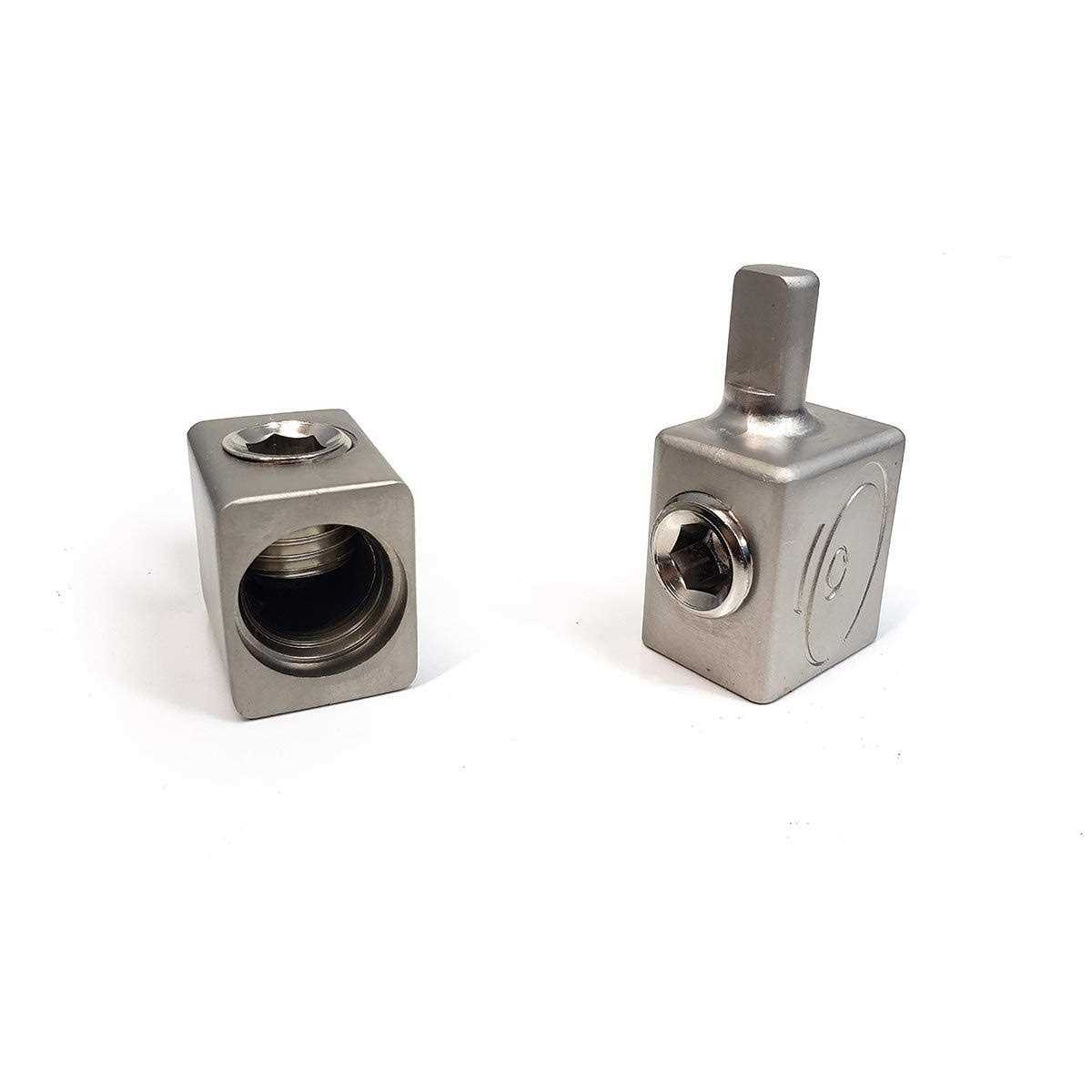 The KnuKonceptz SSGR0000 set screw gauge reducer allows you to instal large gauge 4/0 or 2/0 AWG power / ground wire directly into any amplifier that accepts 1/0 power wire. A large 19mm set screw locks the cable into place. A 10mm Allen wrench (not included) is required to tighten the set screw pr