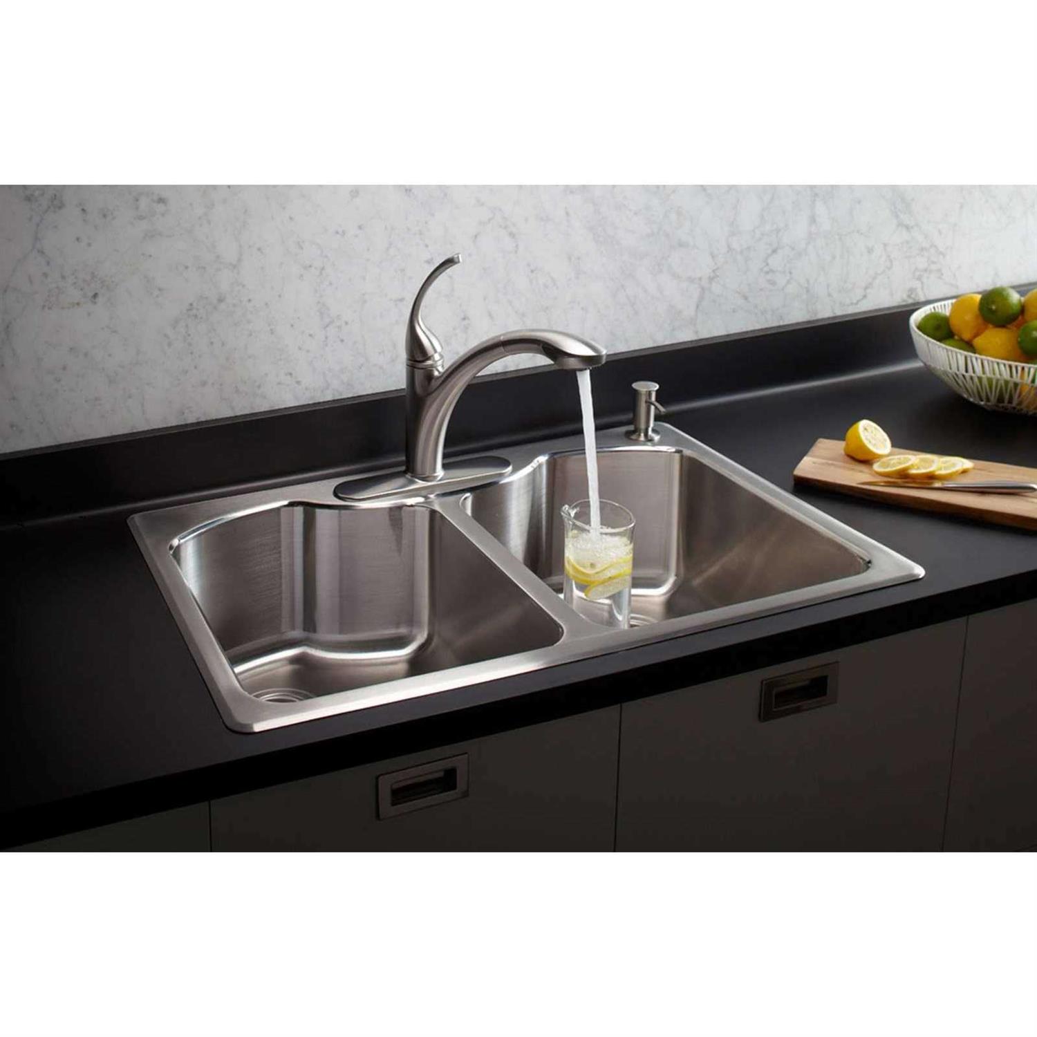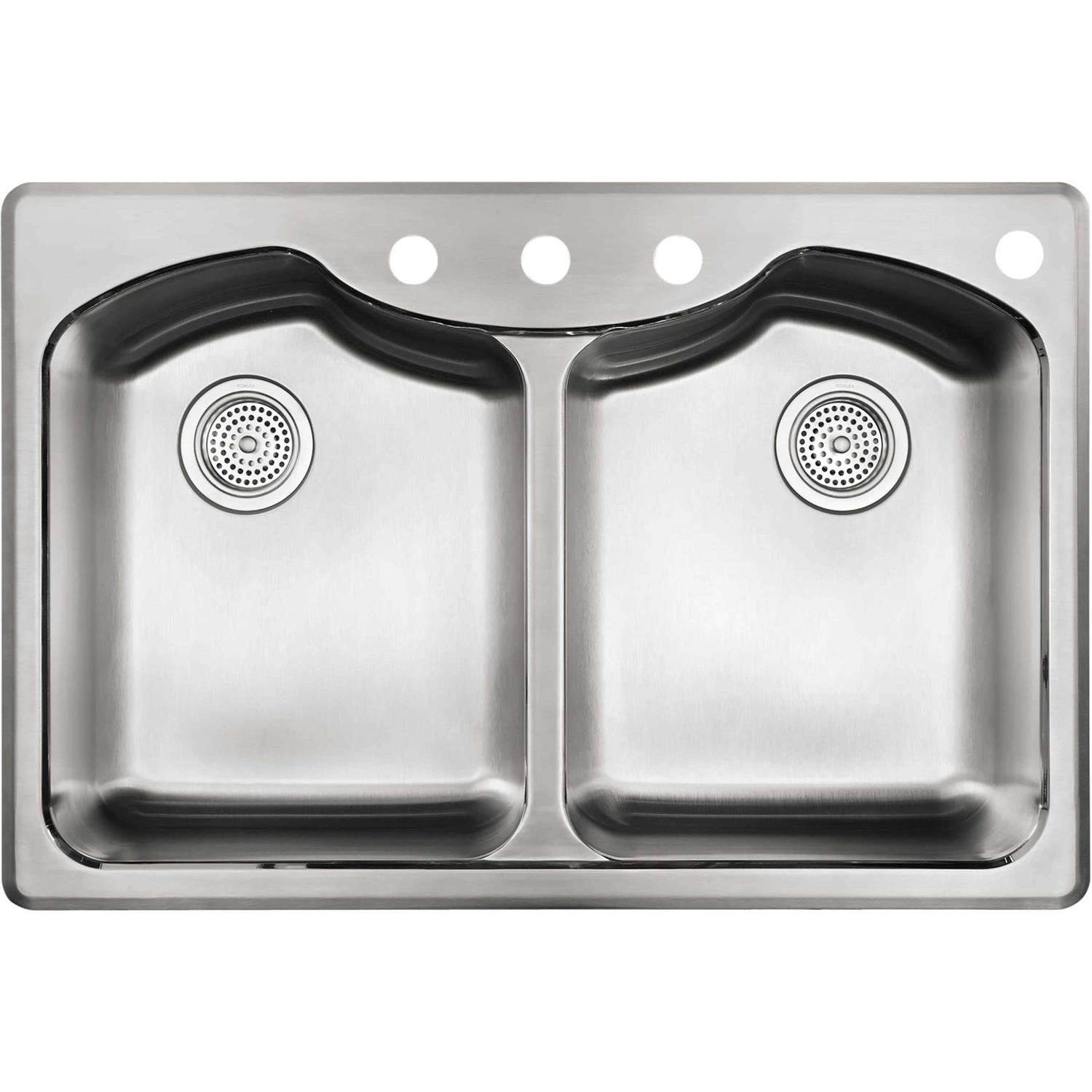Kohler 3842-4-NA Octave 33 x 22 x 9-5/16 Top-mount Double-Equal Stainless Steel Kitchen Sink with Four Faucet Holes