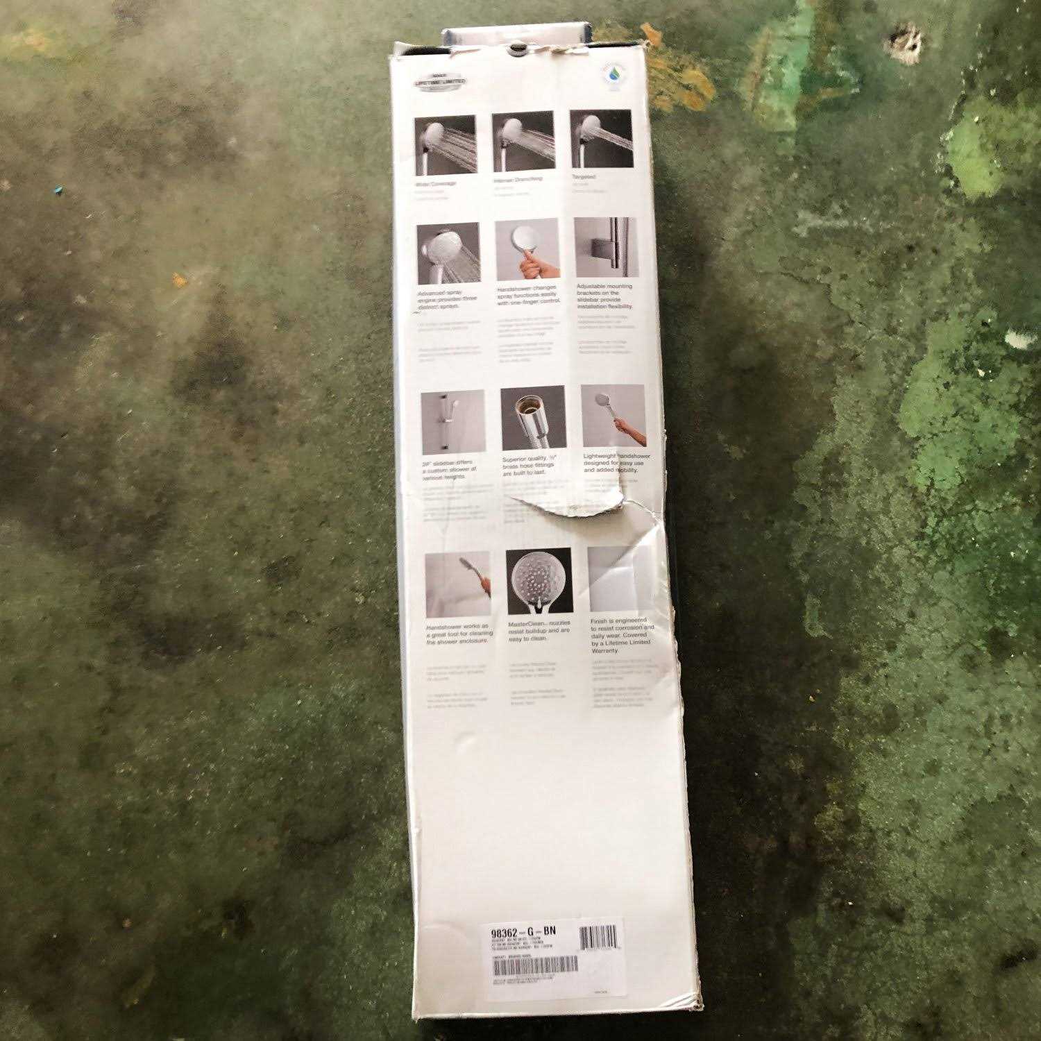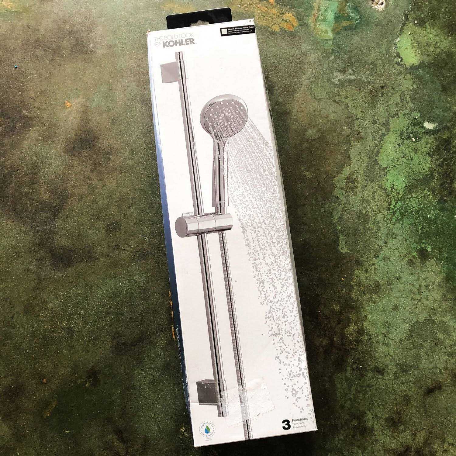 This all-in-one kit includes the Awaken B90 1.75 GPM multifunction hand shower a 24 in. slide bar and a 60 in. ribbon hose. Advanced spray performance delivers 3 distinct sprays – wide coverage intense drenching or targeted – with a smooth rotation of a thumb tab. Ergonomic design makes for superior comfort and ease of use with ideal balance and weight in the hand. The artfully sculpted spray face takes its inspiration from the purposeful patterns found in nature complementing a wide range of bathroom styles. Color: Vibrant Brushed Nickel.
