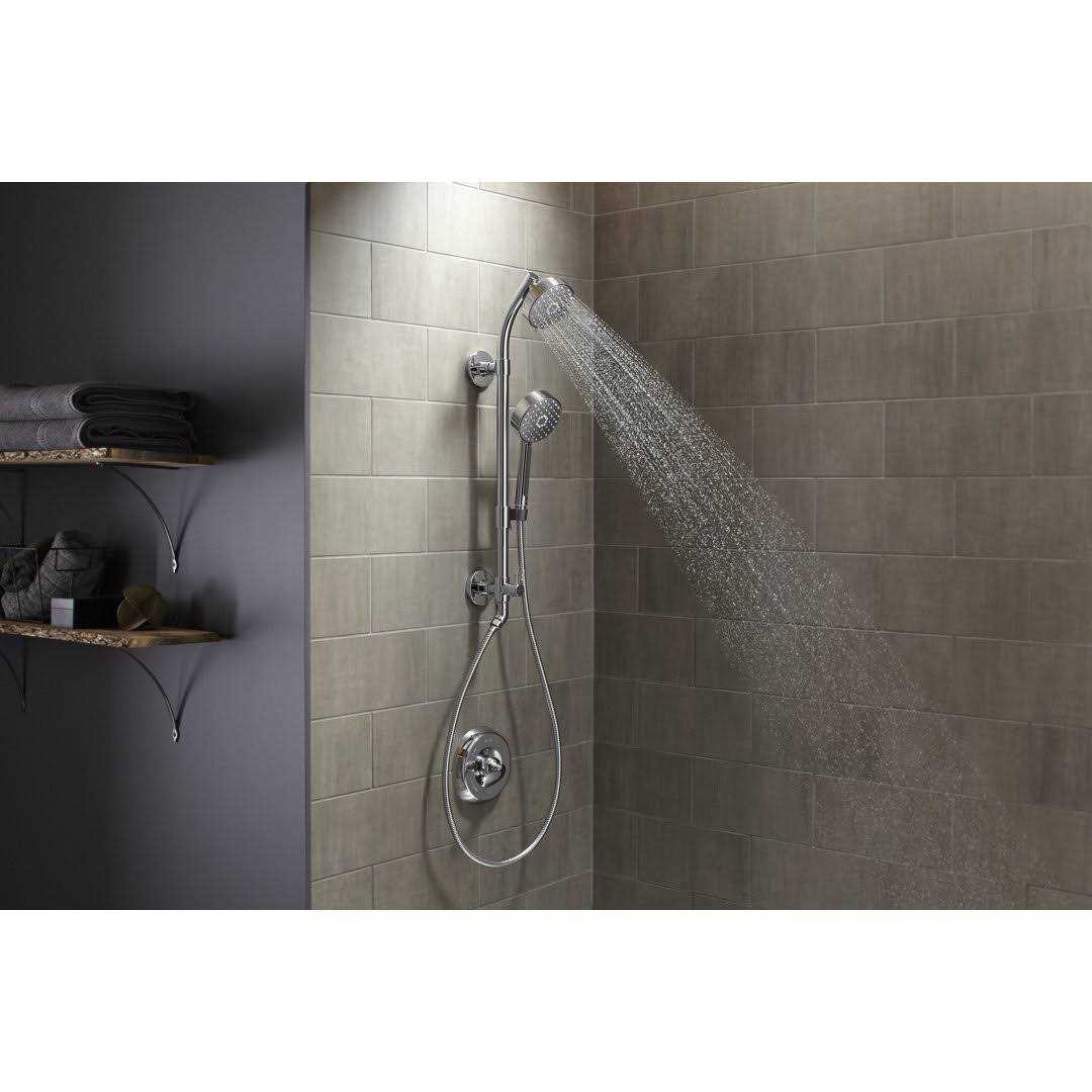 Kohler The awaken handshower brings Kohler quality, design, and performance to your bath. Advanced spray performance delivers three distinct sprays — wide coverage, intense drenching, and targeted — with a smooth rotation of a thumb tab. The ergonomic design makes for superior comfort and ease of use, with ideal balance and weight in the hand. The artfully sculpted sprayface reveals simple, architectural forms that complement contemporary and minimalist baths.