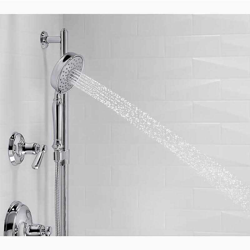 Enjoy luxurious showering combined with up to 30 percent water savings. This 1.75-gpm Bancroft handshower provides three distinct sprays – full coverage, pulsating massage, or silk spray – all enhanced with Katalyst technology for a completely indulgent showering experience. By infusing two liters of air per minute, Katalyst delivers a powerful, voluptuous spray that clings to the body with larger, fuller water drops.