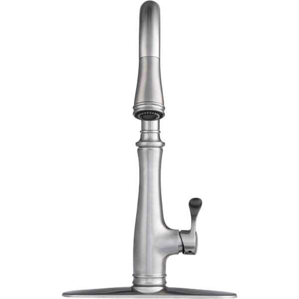 - PULL-DOWN KITCHEN FAUCET: Allows you to control water with one hand and reaches beyond the sink to complete other kitchen tasks.