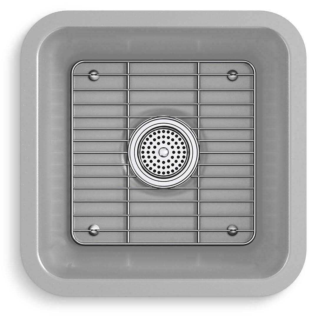 With soft French curves, the Cairn sink offers transitional style to suit contemporary and traditional kitchens alike. The Cairn bar sink is made of KOHLER Neoroc, a matte-finish composite material designed for extreme durability and unmatched beauty. Richly colored to complement any countertop, Neoroc resists scratches, stains, and fading and is highly heat- and impact-resistant. This bar sink includes a bottom sink rack to keep the surface looking new.