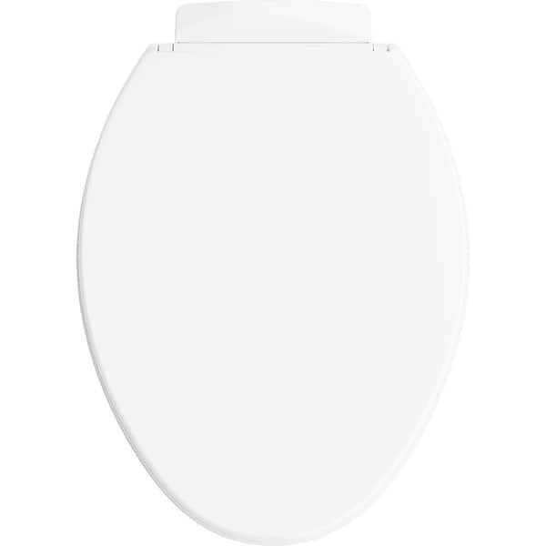 Innovative Quiet-Close technology prevents noisy slamming. Unique Grip-Tight bumpers hold the seat firmly in place and prevent shifting. Color White.