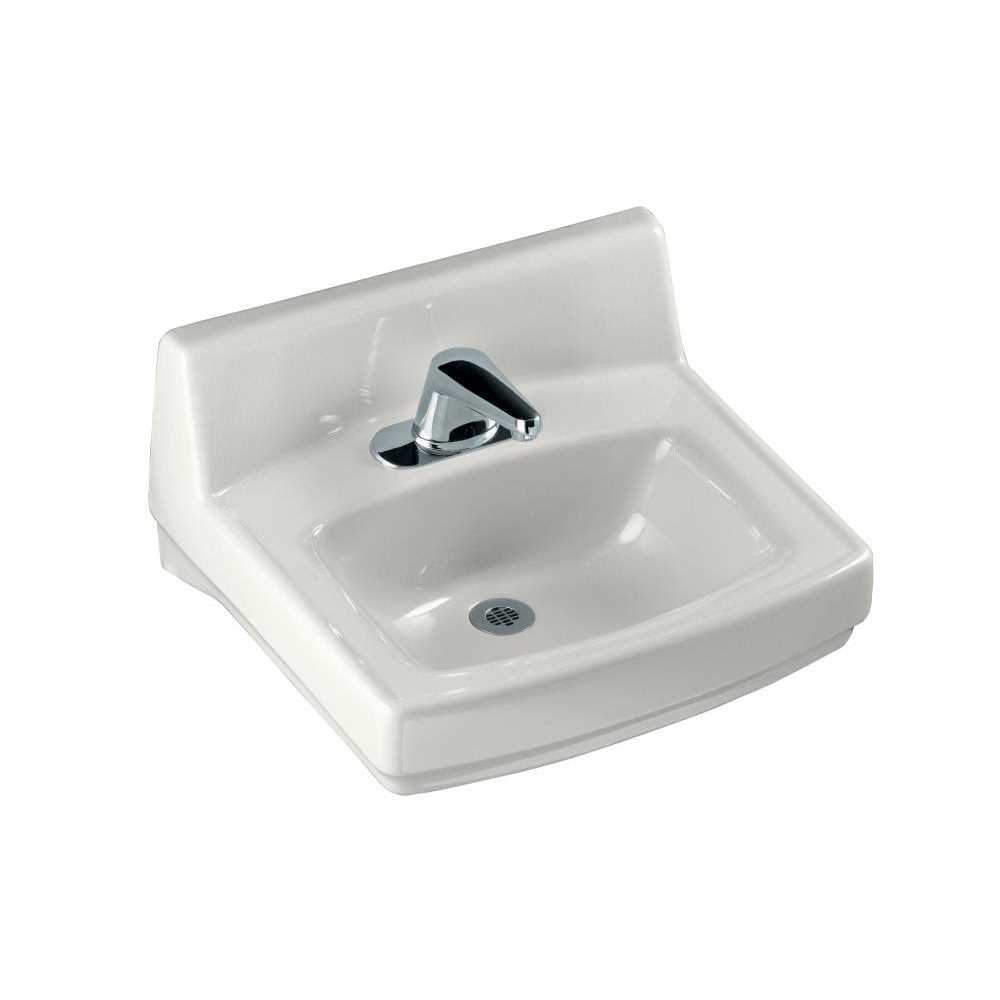 Greenwich 20-3/4-in x 18-1/4-in wall-mount/concealed arm carrier bathroom sinkwhen your lavatory needs to stand up to rigorous use, depend on premium kohler materials. Crafted of vitreous china with our exclusive kohler glaze, this greenwich wall-mount lavatory will provide a lifetime of beauty and reliable performance. Its remarkably hard, glossy finish protects the surface for a clean, sanitary sink that maintains its shine under repeated use. This model has drillings for a concealed arm carrier, a faucet with 4-in centers and includes a wall hanger. Made from premium materials that withstand high-volume usageconstructed of vitreous china20-3/4-in l x 18-1/4-in wwall-mount installationfaucet not includedincludes wall hangerdrilled for concealed arm carrier finish: white dimensions: backtofront: 18. 25in – bowl depth: 12. 875in – width: 20. 75in.