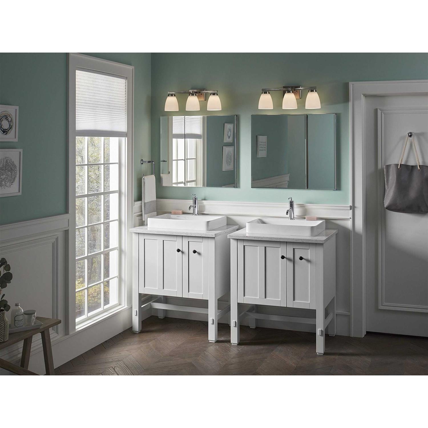 Kohler Vox 23″ Rectangle Vessel Bathroom Sink with Single Faucet Hole – White K-2660-1-0 Sleek and contemporary, the Vox Rectangle vessel-style sink features a wide, shallow basin and Rounded edges in true minimalist fashion. Countertop installation ensures this sink will stand out in your bathroom as a striking focal point. FEATURES Single faucet hole Overflow drain with included 1105685 Polished Chrome cap Overflow drain. Length: 23″ Width: 18 1/8″ Height: 6 7/8″ Model #K-2660-1-0 Material Vitreous china. Installation Drop-in or vessel.