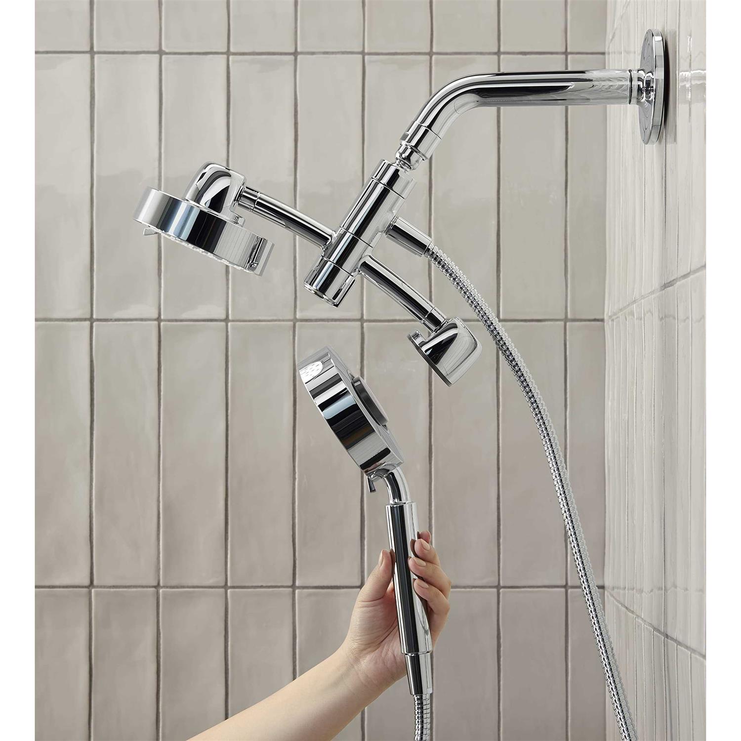 Kohler Turn your shower into the ultimate spa-like experience with the innovative Purist 2-in-1 multifunction shower combo kit. A rotating rail creates virtually endless options for shower head positions ? rotate the rail horizontally and adjust the shower head and handheld shower head for a relaxing shoulder massage. Rotate the rail vertically for a more traditional hair and body showering experience. Both shower head and handheld shower head are comprised of three spray sensations to suit your every mood. The Purist 2-in-1 shower combo also features a water-saving pause feature to temporarily pause water flow.