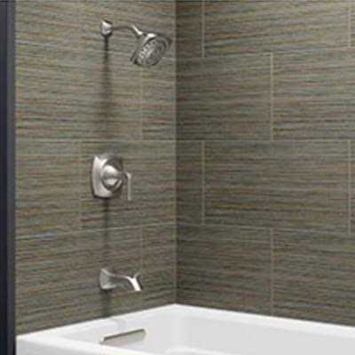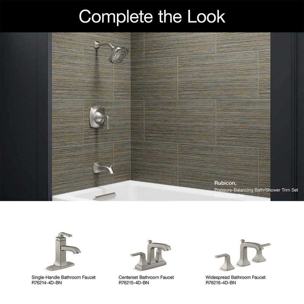 Drawing inspiration from Art Deco style, Rubicon blends clean lines with subtle curves for a versatile and contemporary design. Its streamlined look is easy to clean and complements a variety of modern bathrooms. This bath/shower faucet trim includes a multifunction showerhead, Rite-Temp pressure-balancing valve, single lever handle and bath spout.