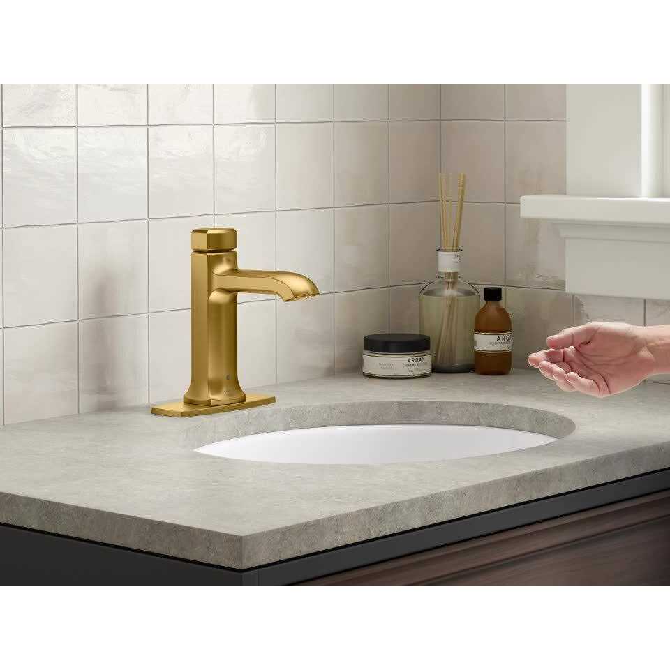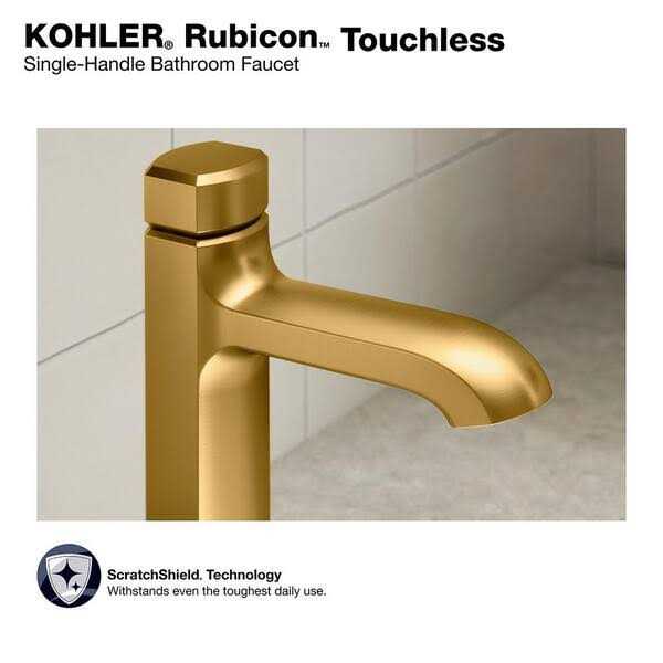 Kohler Rubicon Battery Powered Touchless Single Hole Bathroom Faucet in Vibrant Brushed Moderne Brass