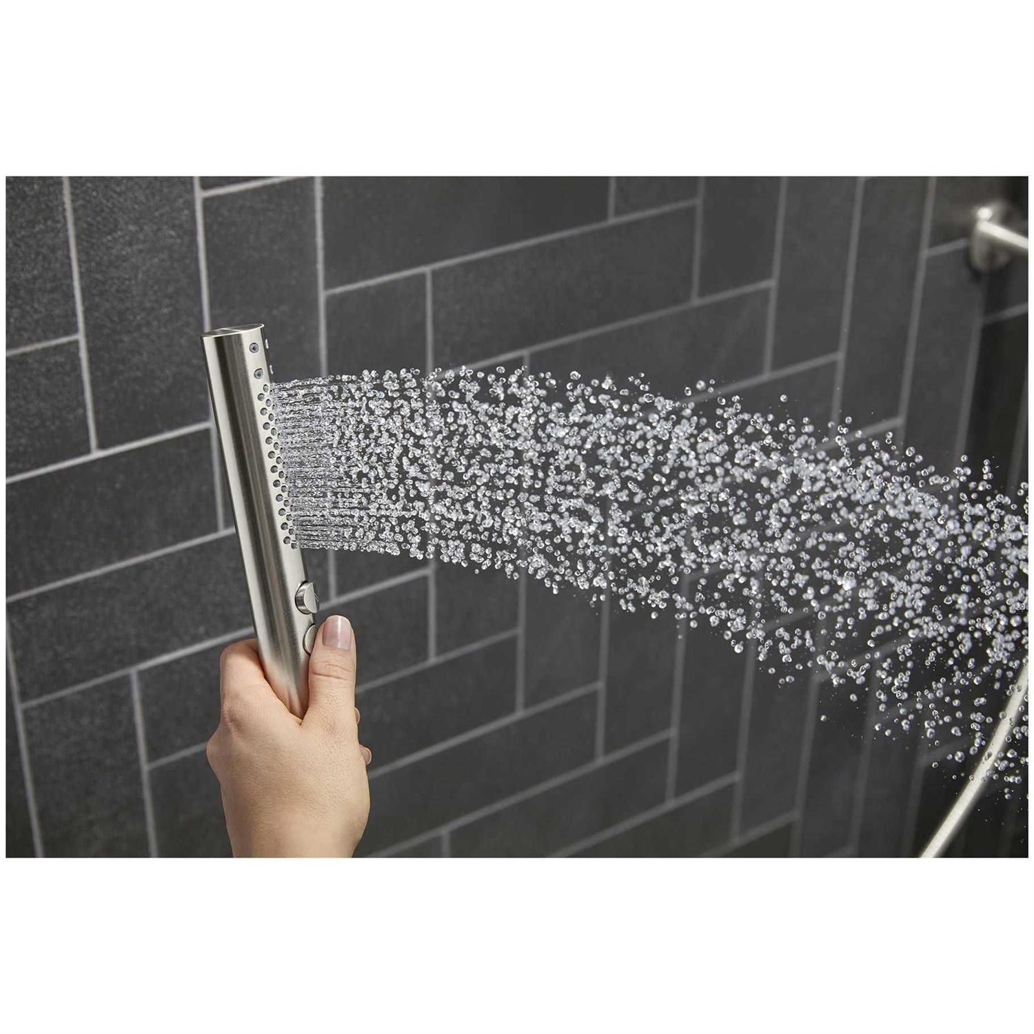 The clean contemporary look of the Shift + Round handshower complements a wide variety of style lines. Two spray options give you a personalized water experience, allowing you to target specific areas with a concentrated massage or full-coverage setting. This Shift model also features a lower flow rate for conserving water without compromising performance.