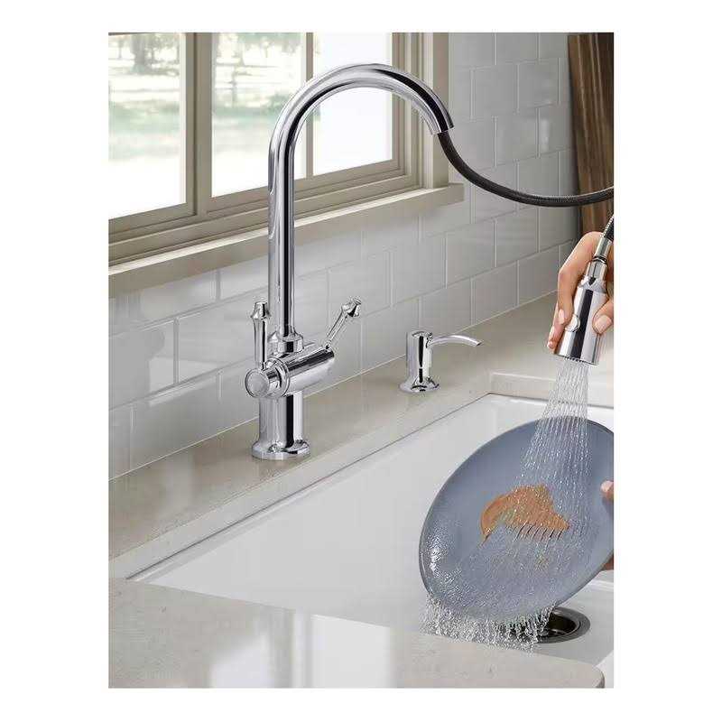 Be the first to review “KOHLER Thierry Two Handle Pull-Down Sprayer Kitchen Faucet with Soap Dispenser”