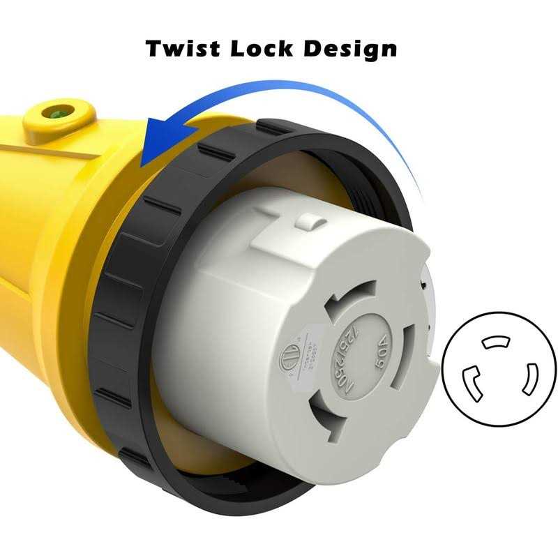 - ConvenientThe locking connector has a threaded ring,with LED Power Indicator.15 Amp Male Plug To 50 Amp Locking Femal.