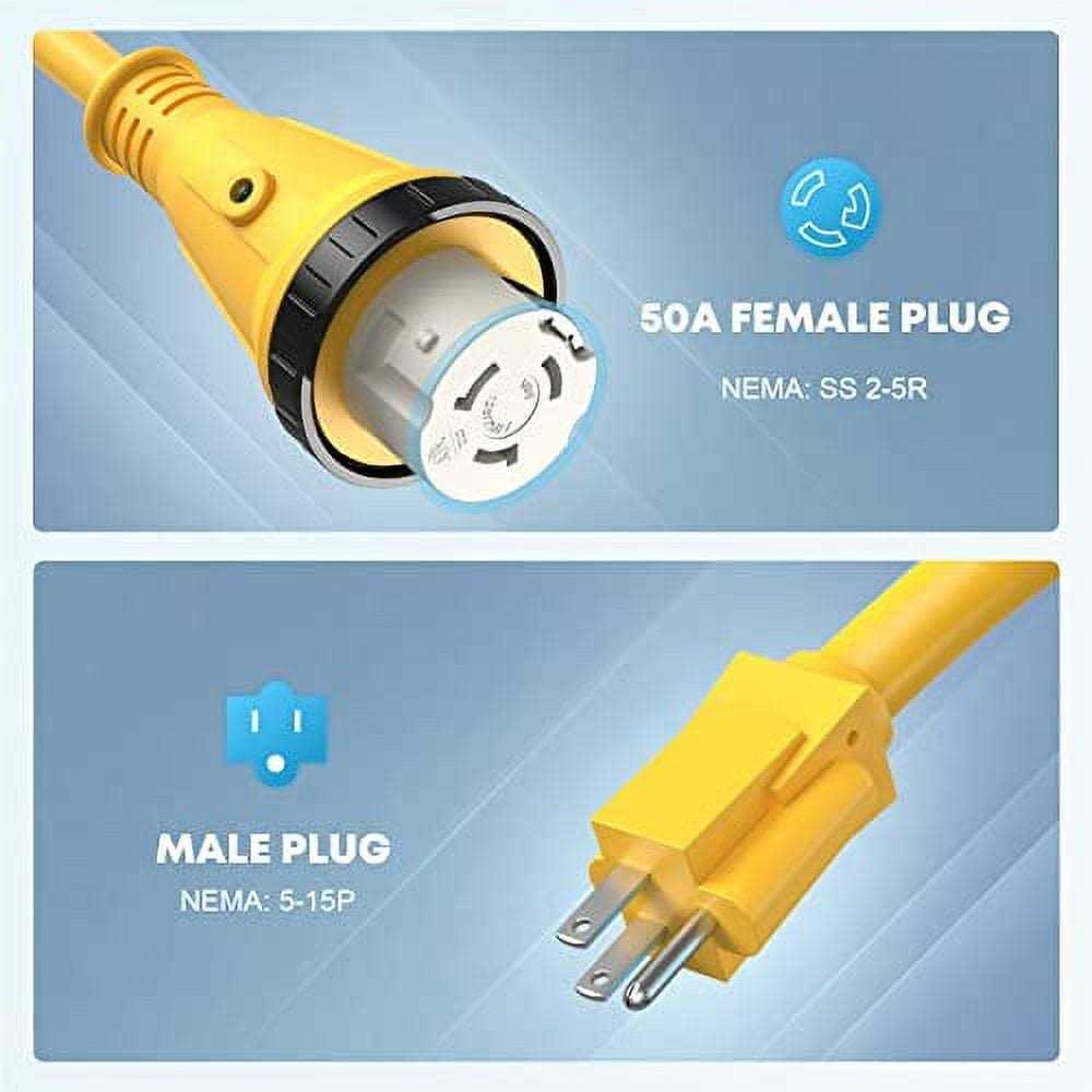 Kohree 50 Amp to 15 Amp 110v RV Adapter Plug 15 Amp Male to 50 Amp Female RV Power Adapter Cord