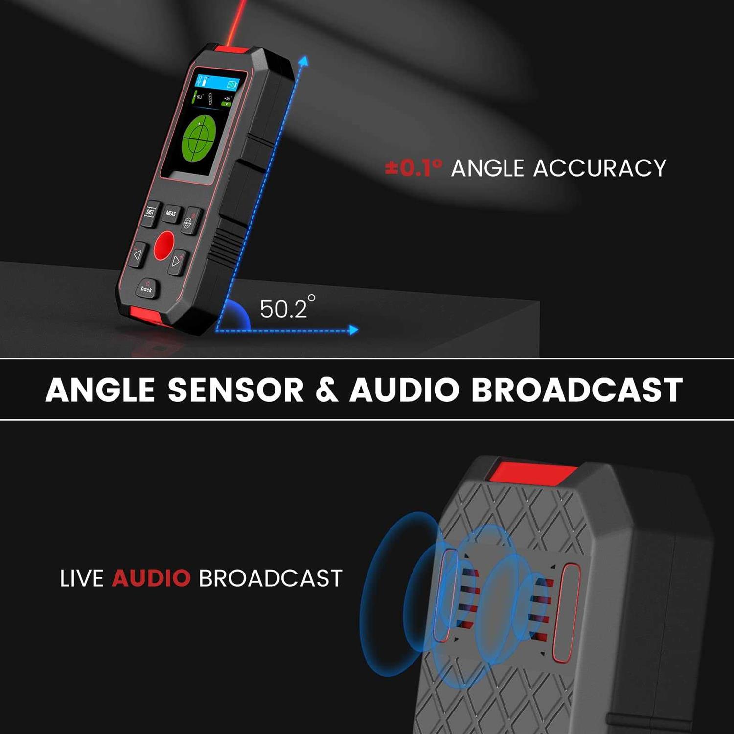 KOLSOL Stud Finder with 196ft Laser Measure, 3 in 1 Electric Wall Scanner Sensor with ±0.1° Digital Level Lithium Battery, LCD Studs Detector Audio