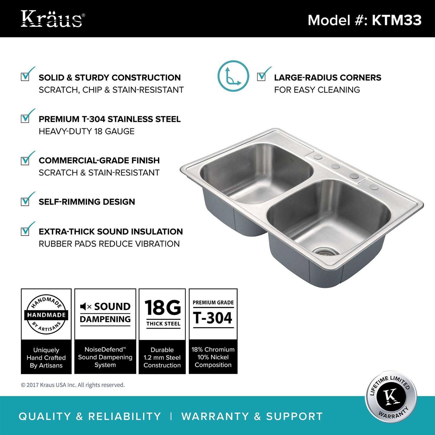 Be the first to review “Kraus 33 Topmount 50/50 Double Bowl 18 Gauge Stainless Steel Kitchen Sink KTM33”