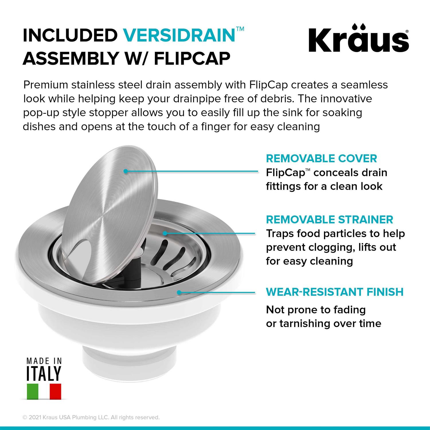 Handcrafted in Italy the Bellucci Workstation redefines granite sinks with enhanced functionality and modern style. An integrated ledge supports custom accessories that slide across the sink streamlining your kitchen workflow from meal-prep to clean-up. The sink comes with a chef’s kit that includes a multipurpose roll-up drying rack and heavy-duty cutting board that allow you to work right over the sink without taking up counter space. The high-performance sink is made from an advanced quartz composite material with the look and feel of real stone. A KRAUS Healthy Home Product this cutting-edge sink is enriched with naturally antimicrobial silver ions that repel bacteria for a cleaner and healthier kitchen. Undermount installation creates a seamless transition between sink and countertop with no exposed mounting deck to trap food and debris. The large single bowl with rear offset drain maximizes usable workspace in the sink and easily accommodates for large pots baking sheets and stacks of dishes. Engineered for optimal draining the gently sloped bottom prevents water from pooling in the sink. Extra-tough construction offers unparalleled resistance to impact heat and thermal shock. Designed with rounded corners and a non-porous surface this sink is stain resistant and easy to clean. The vivid fade-resistant color is enhanced with UV protection to prevent discoloration over time. Premium stainless steel drain assembly is included.