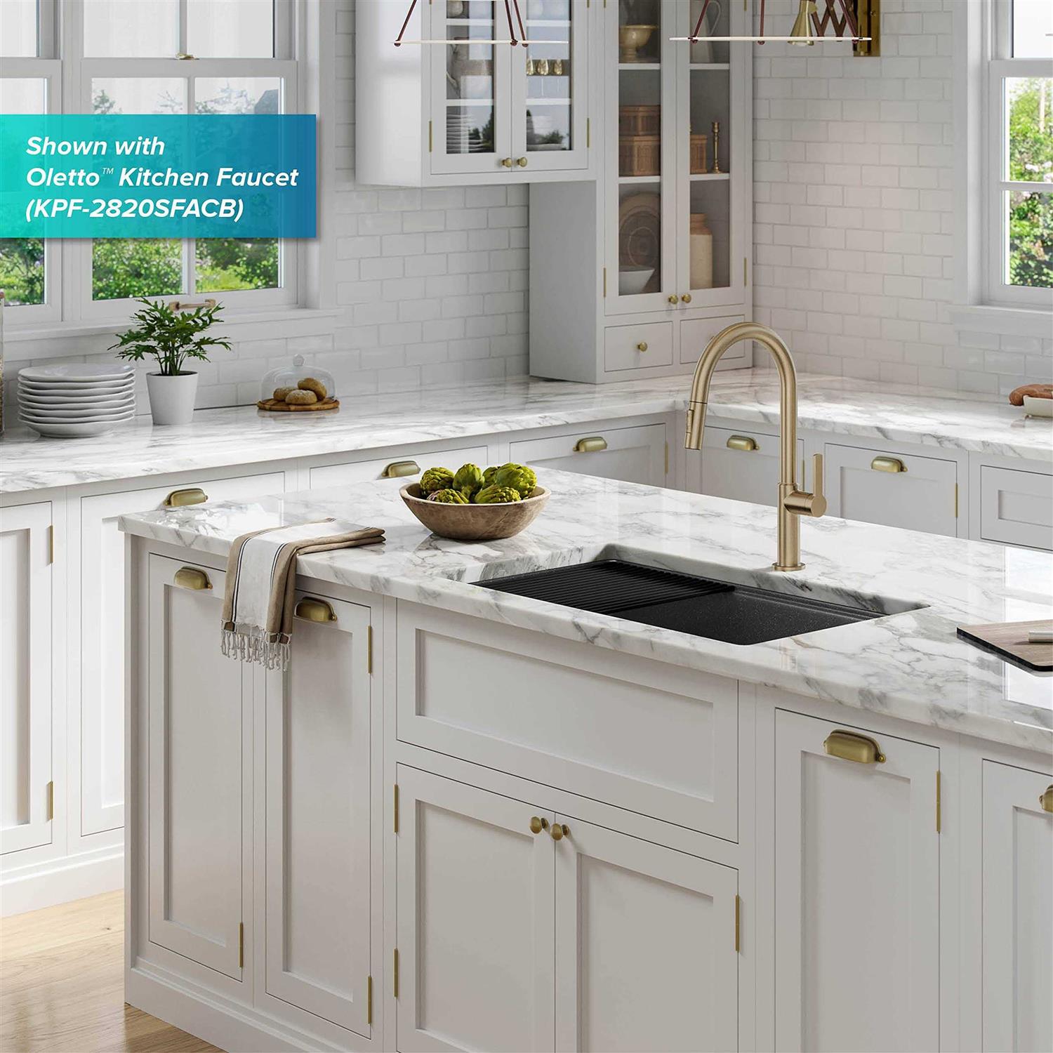 Kraus KGUW2-33MBL Bellucci Workstation Undermount Granite Composite Single Bowl Kitchen Sink with Accessories
