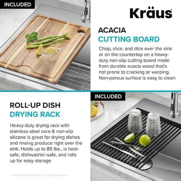 Be the first to review “KRAUS Loften Drop-in/Undermount Single Bowl Stainless Steel Kitchen Workstation Sink with Accessories”