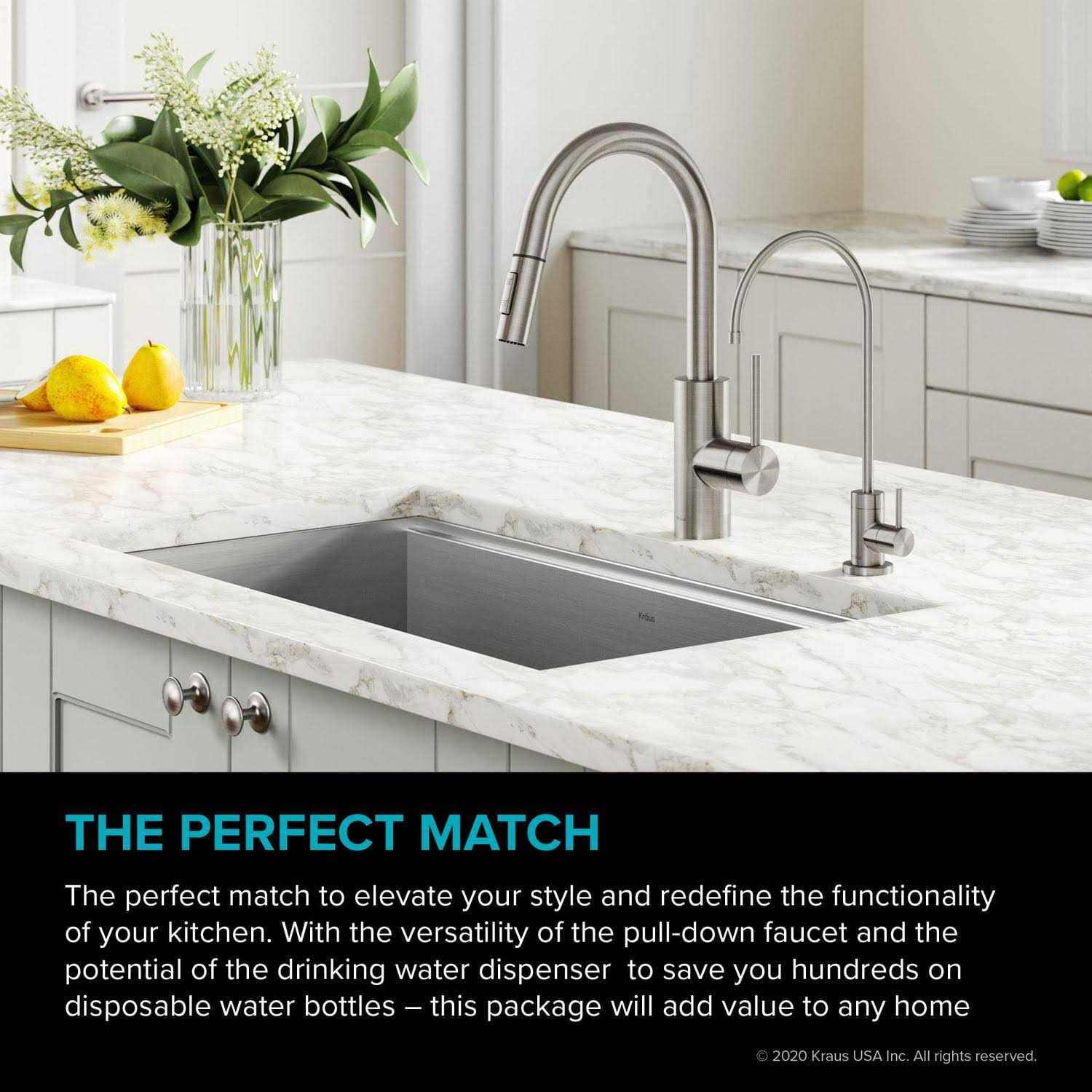 Kraus Oletto Pull-Down Kitchen Faucet & Purita Water Filter Faucet in Spot Free Stainless Steel