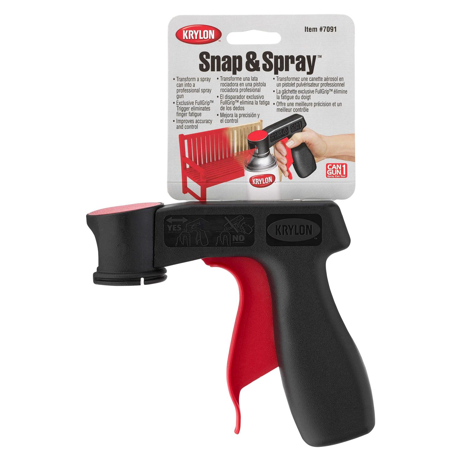 Krylon Snap & Spray Gun – The Krylon Snap & Spray Gun that offers more durability, comfort and control when spraying and transforms any spray can into a spray gun. The E-Z Pull FullGrip Trigger will help eliminate finger fatigue and improve accuracy and control. It is lightweight and easy to use with gloves.