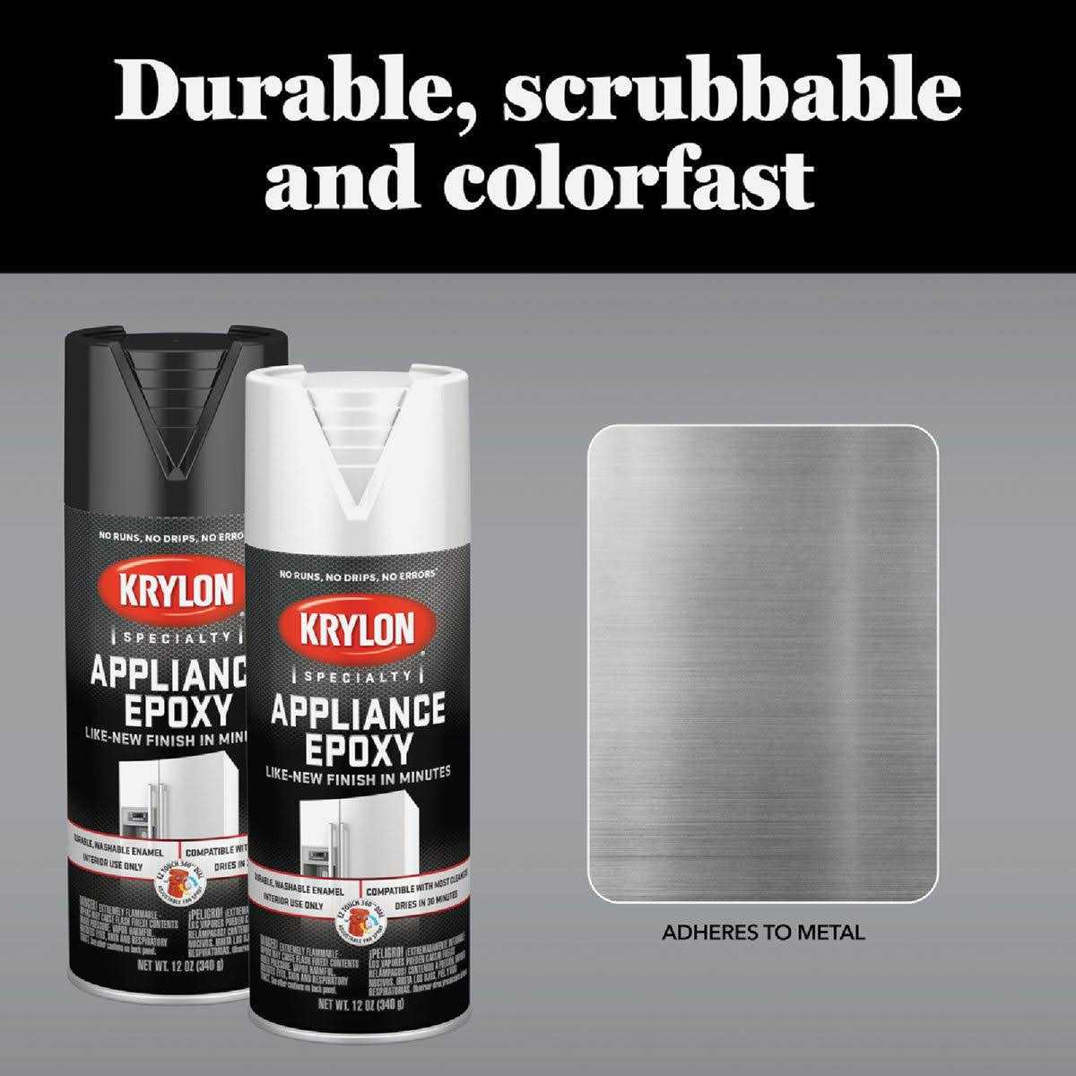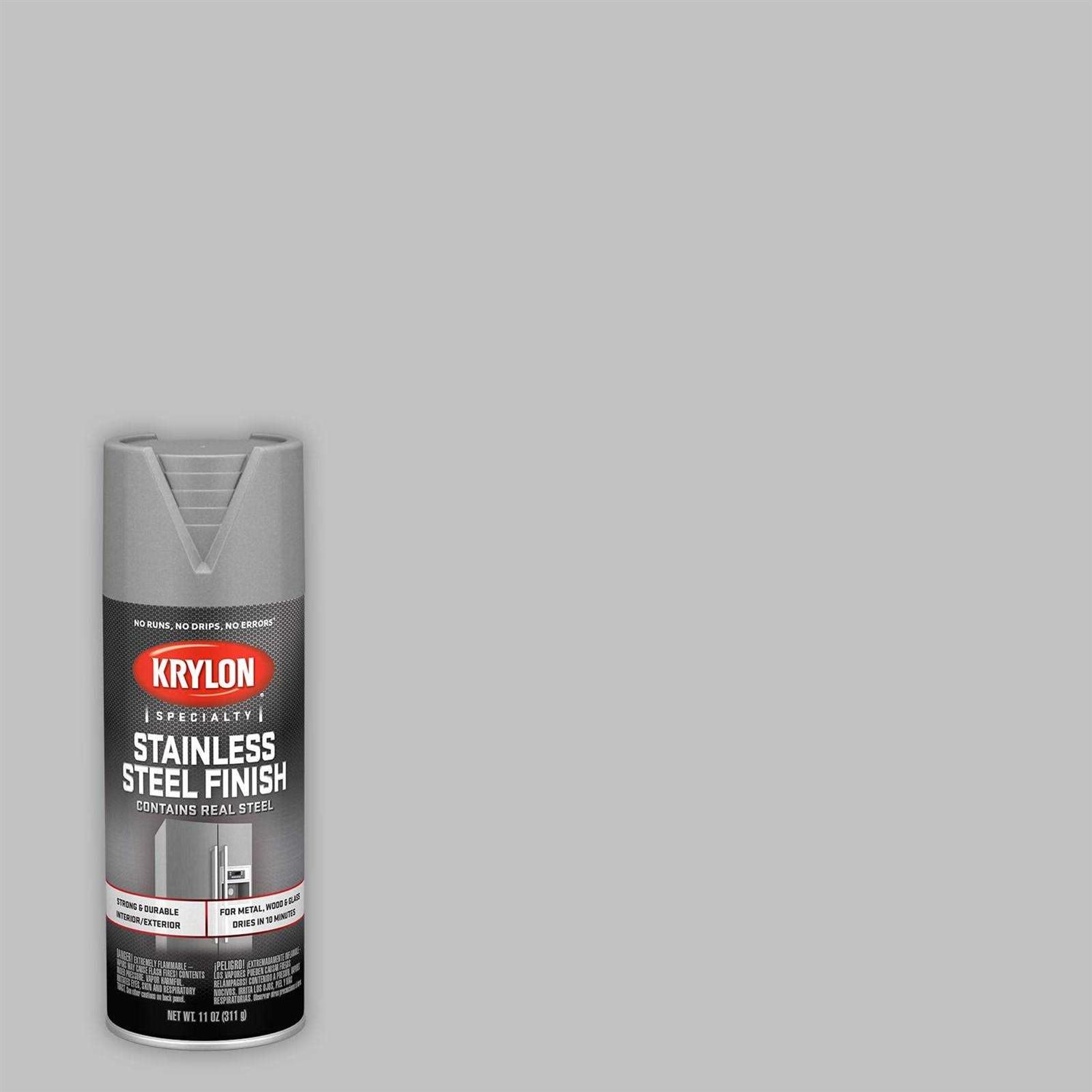 Stainless Steel Finish Krylon 11 ounce spray paint is a durable finish can be used indoors and out to create the modern high quality look of stainless steel. Transform your ordinary surfaces to a stainless steel finish. Ideal for appliances, furniture, accessories and more. Dry to touch in 10 minutes, fully dry to handle in 7 days. For use on glass, iron, metal and wood. Coverage 25 square feet.