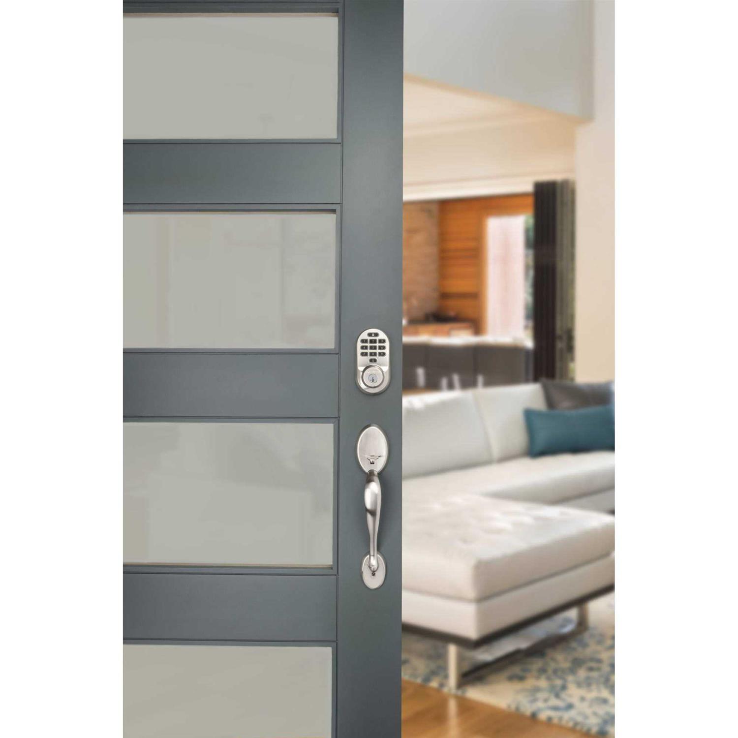 Halo Wi-Fi Smart Lock is a keyless entry electronic deadbolt featuring SmartKey. Using the Kwikset App, you can lock/unlock, program up to 250 user access codes, and receive notifications from anywhere there’s an Internet connection. This single cylinder deadbolt can be locked or unlocked by using the keypad or key from the outside as well as the turn button from the inside. The crisp, clean appearance of the Satin Nickel finish brings a modern feel.