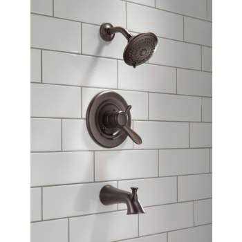 Reminiscent of rolling ocean waves the sleek curves of the Lahara Bath Collection make a lasting impression. This Delta Lahara Monitor 17 Series Tub and Shower Trim in Chrome is an eye-catching addition to any bath and puts full control of your shower experience into your hands with the ability to adjust water temperature and volume independantly. The Delta Monitor Dual-Function Pressure Balance Valve keeps the water temperature within a safe 3.6 F 1.7 C* making sure your family doesnt experience a sudden and possibly unsafe change in water temperature as a result of running water elsewhere such as using a dishwasher flushing a toilet or running a washing machine. Delta Touch-Clean Spray Holes allow you to easily wipe away calcium and lime build-up with the touch of a finger for an instantly refreshed look. Complete the unit with the addition of a Delta MultiChoice Universal Valve R10000-UNBX giving you the flexibility to upgrade the style and functionality of your shower in the future without altering the plumbing behind the wall. *Requires inlet water temperature be set correctly. May Require seasonal adjustments.