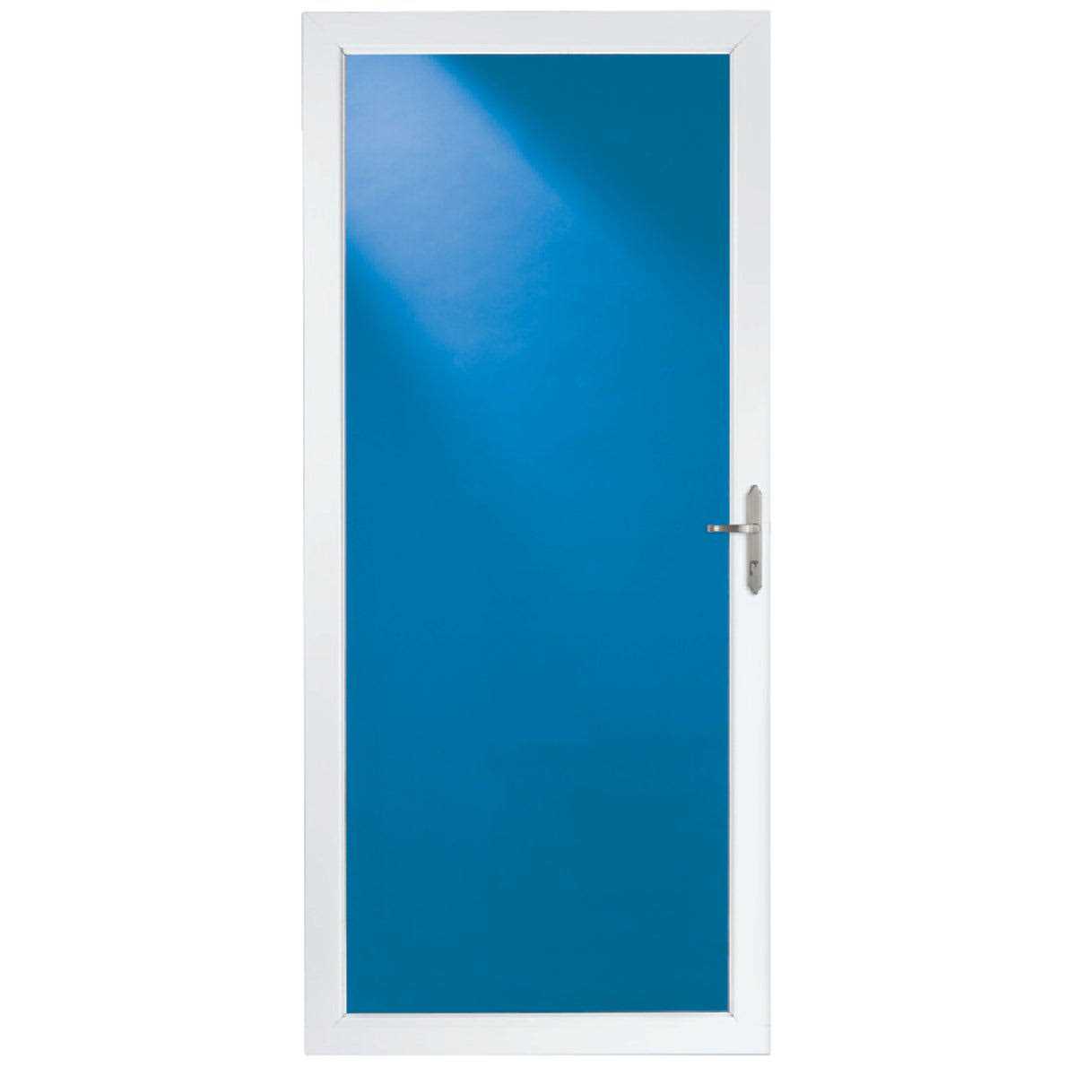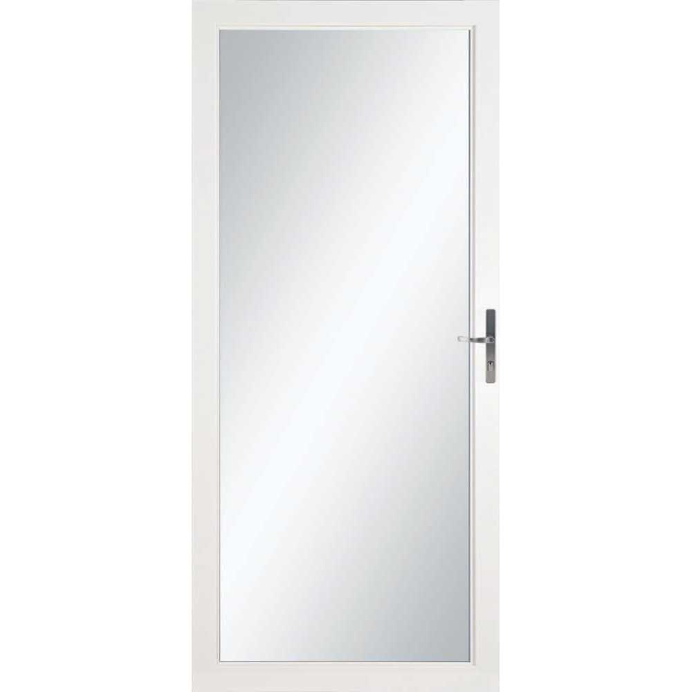 Let in the sunlight. The full glass design allows maximum natural light into your home and enhances any entrance. This clear door lets in sunlight while increasing your energy efficiency by up to 80%. These doors include an interchangeable screen that allows you to switch between full glass or full screen for seasonal ventilation. The 1?-inch thick frame and heavy-duty weatherstrip blocks out harsh weather while the aluminum frame gives you a maintenance-free finish. It comes with a brushed nickel interior and exterior handle and matching expander.
